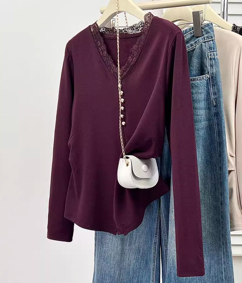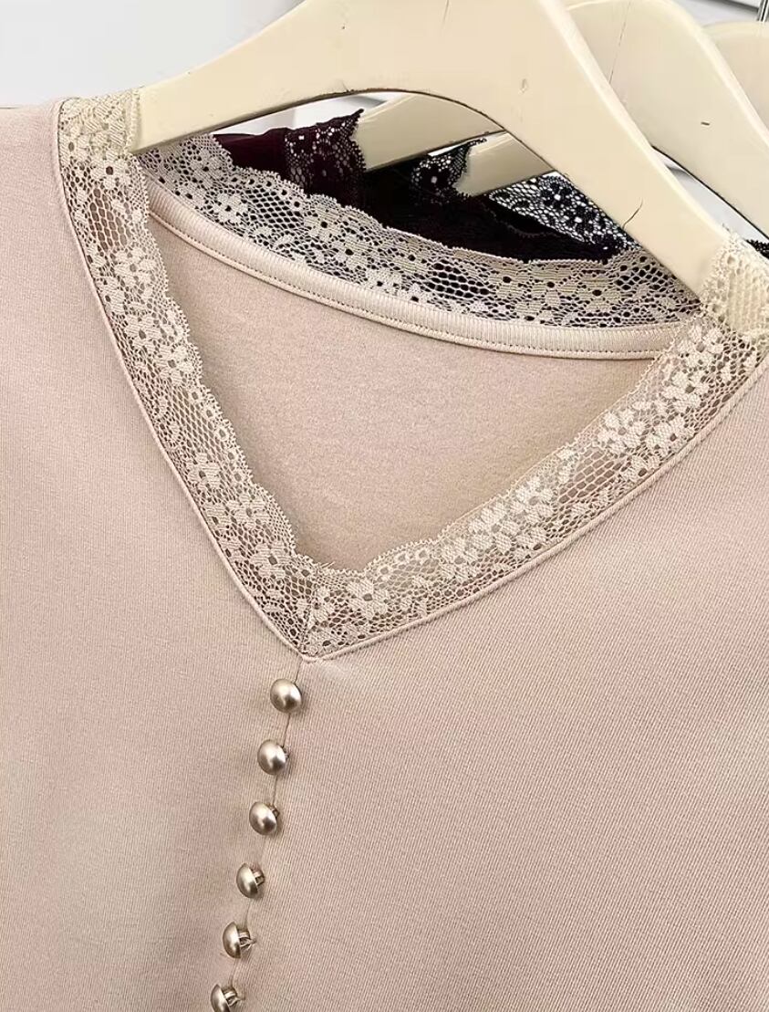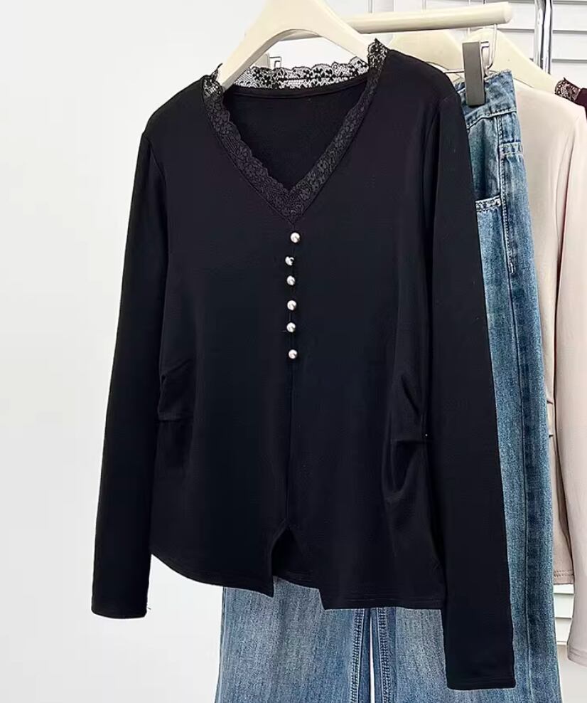 レースカラーアシメボタンドッキングトップス ・71106