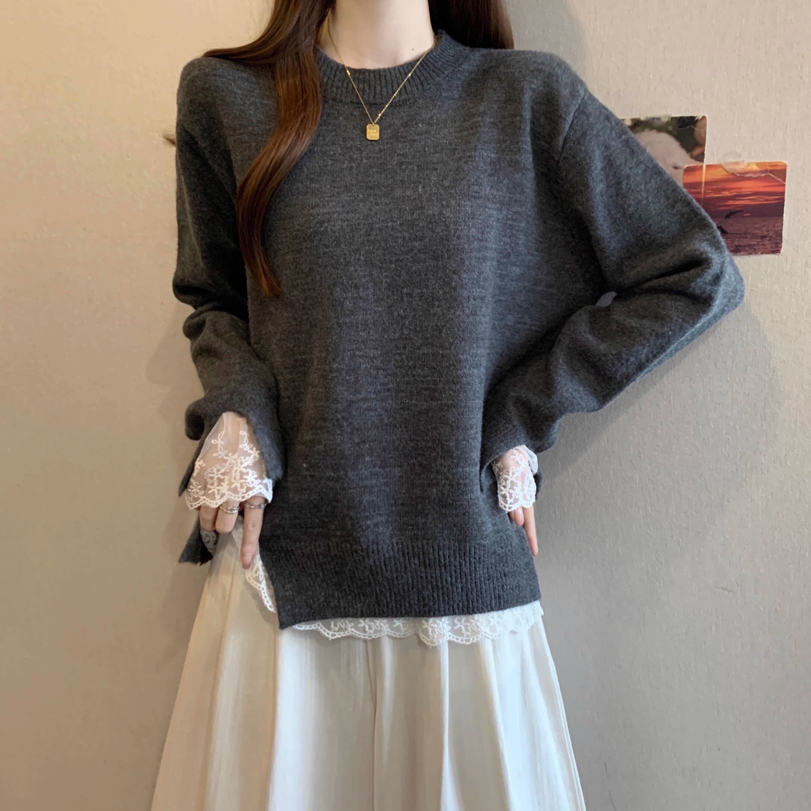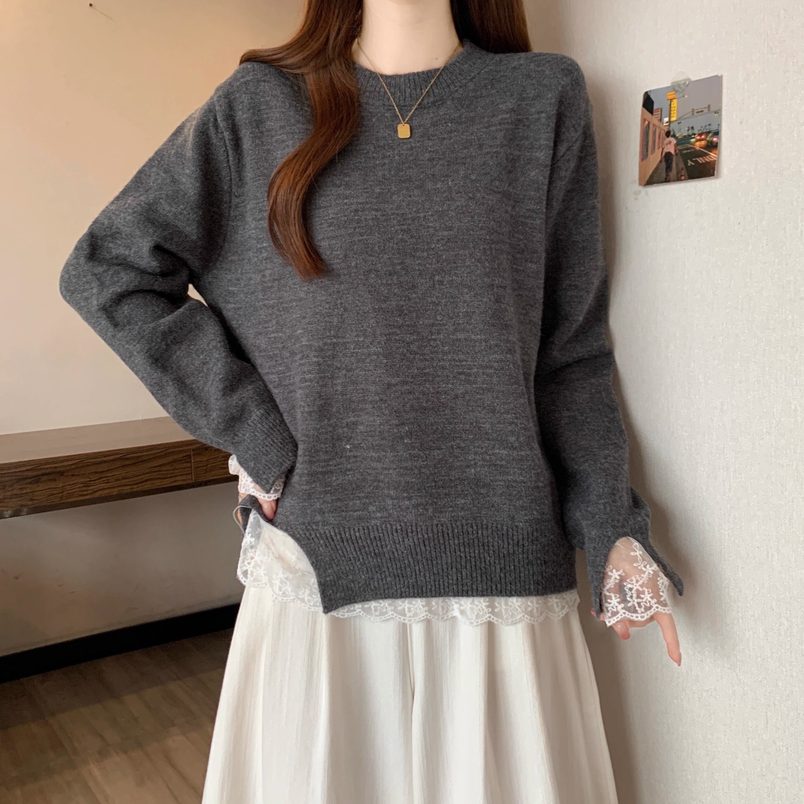 2色/フロントリボンフラワーラメニットトップス ・73833