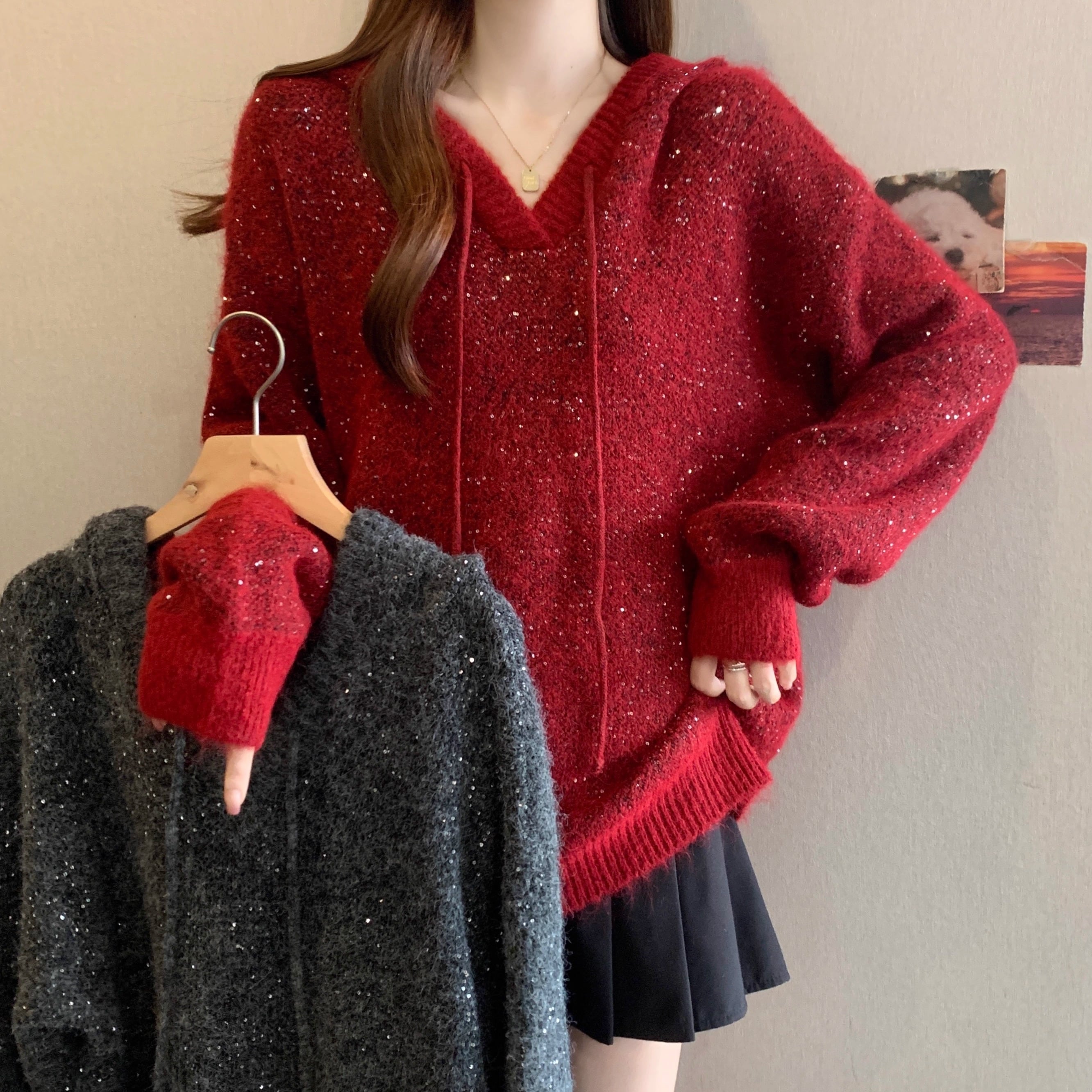 2色/フロントリボンフラワーラメニットトップス ・73833