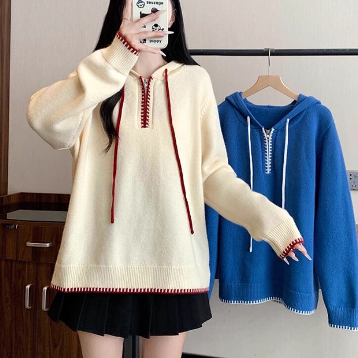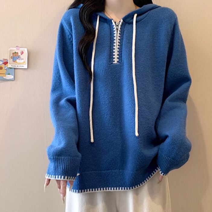 3色/配色ラインハーフジップニットプルオーバー ・73864