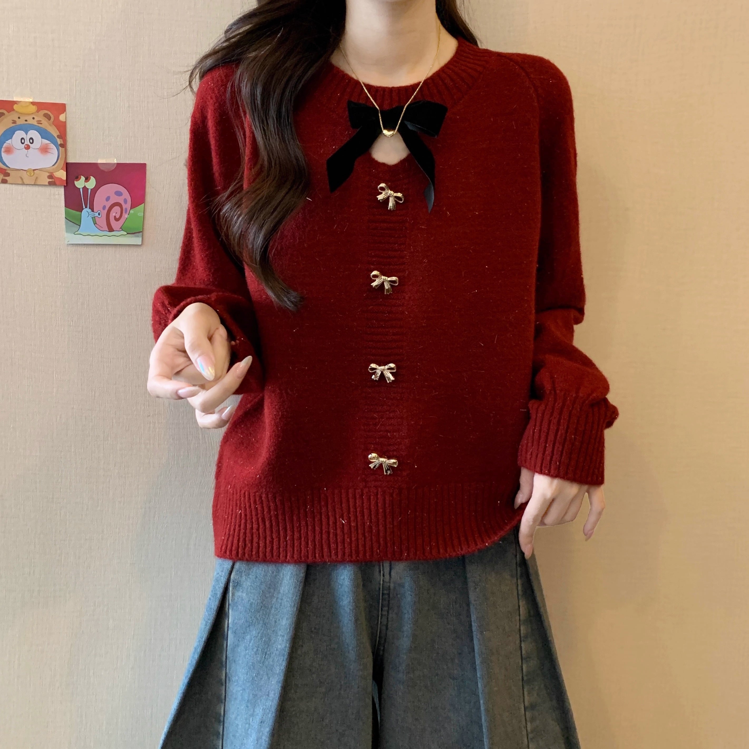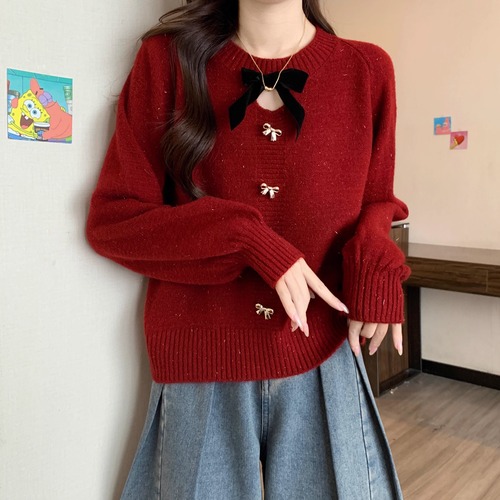 2色/フロントリボンフラワーラメニットトップス ・73833