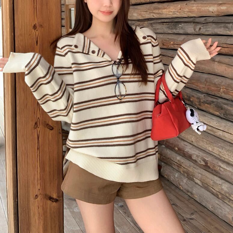 3色/配色ラインハーフジップニットプルオーバー ・73864