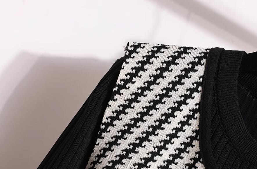 【2点セット】2色/ハイネックトップス+サイドベルトチェックジャンスカ ・72066