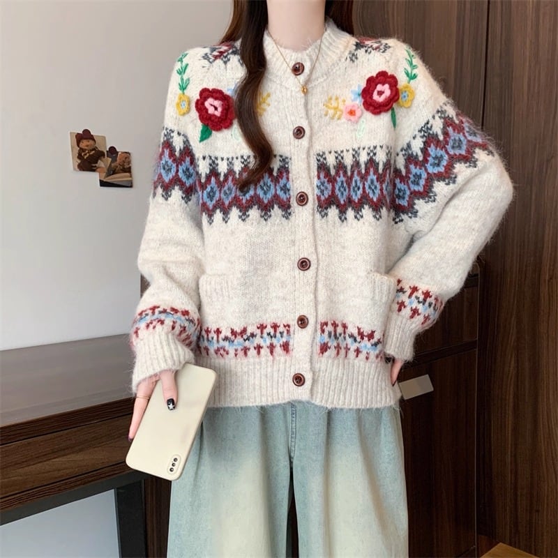 2色/ノルディック柄ポロカラーニットカーデ ・72764