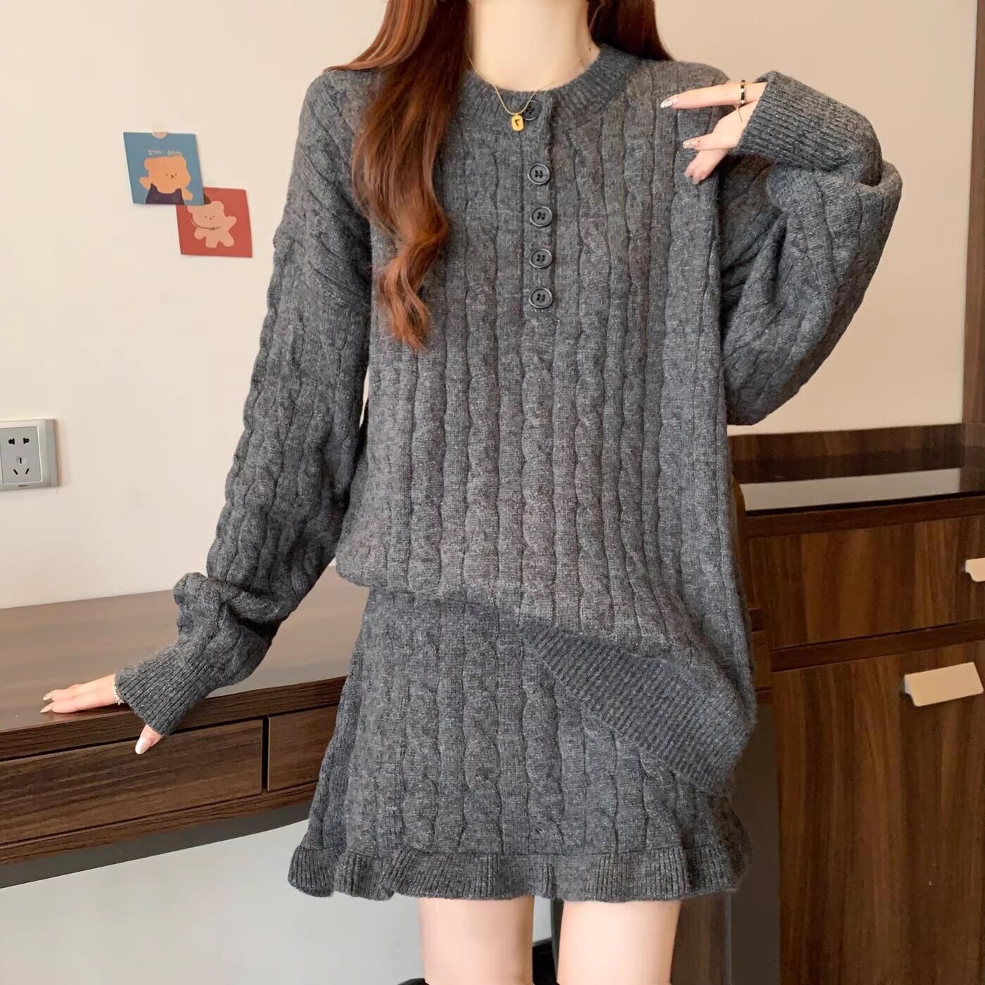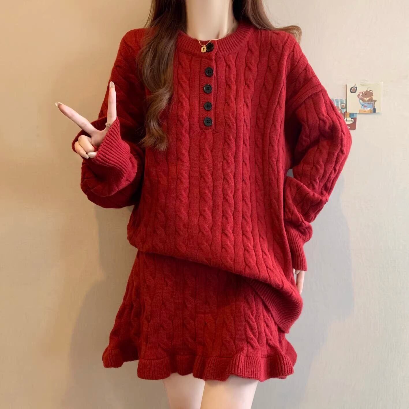 ▽Instagram「新作情報配信中」 フォローお願いいたします。 https://www.instagram.com/sucrier_closet/ ▼カラー レッド(画像2枚目) オフホワイト(画像3枚目) グレー(画像4枚目) ▼サイズ [ Mサイズ ] トップス:着丈67cm バスト112cm スカート:着丈40cm ウエスト60cm [ Lサイズ ] トップス:着丈68cm バスト116cm スカート:着丈41cm ウエスト64cm [ XLサイズ ] トップス:着丈69cm バスト120cm スカート:着丈42cm ウエスト68cm [ 2XLサイズ ] トップス:着丈70cm バスト124cm スカート:着丈43cm ウエスト72cm ※1-3cm程度の誤差がある場合がございます。予めご了承ください。 ▼シーズン 秋冬 ▼同じカテゴリの商品はこちら https://www.sucrier.jp/categories/1737171 ▽お支払い方法 ・クレジットカード決済 ・キャリア決済 (docomo/au/Softbank/Y!mobile) ・後払い決済 (商品お届け後コンビニ払いなど) ▽注意点 ※こちらの商品は決済から10日-3週間前後でのお届けとなります。 ※配送日時指定等に関しては、ご指定できないことご了承くださいませ。 ※できる限り早くお届けできるように手配させて頂きます。 ※検品はしておりますが、もし届いた商品に不備がありましたら、誠実に対応させていただきます。 商品ID:SC073751