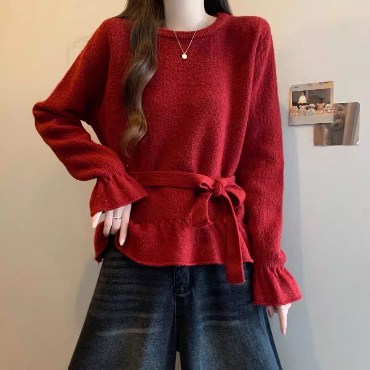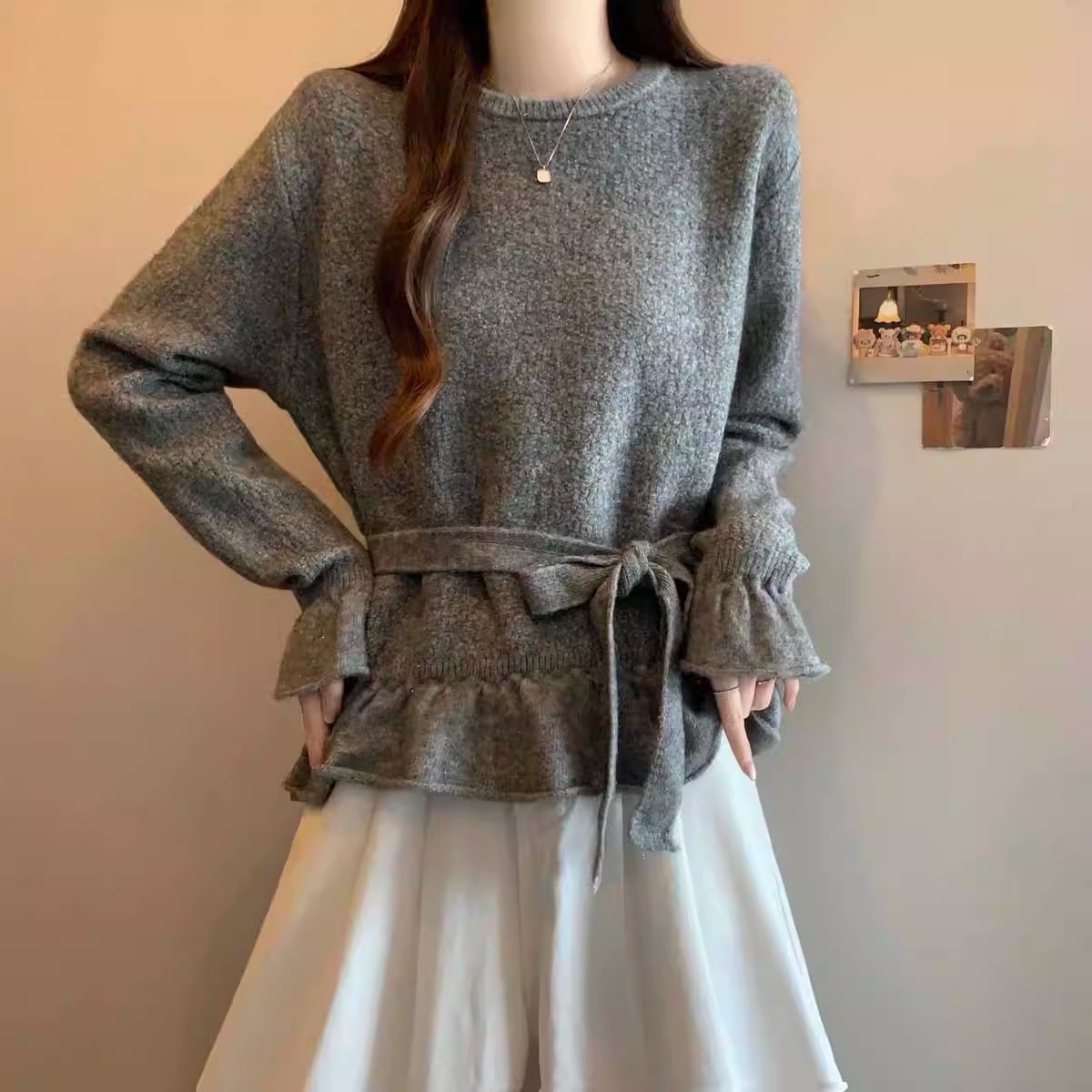 2色/フロントリボンフラワーラメニットトップス ・73833