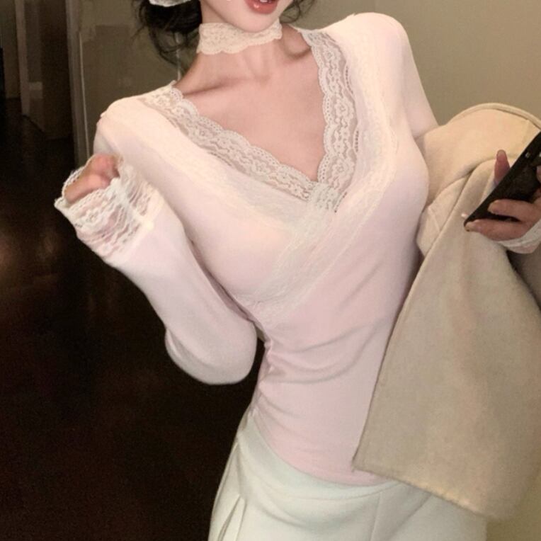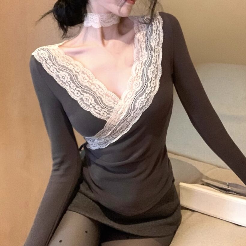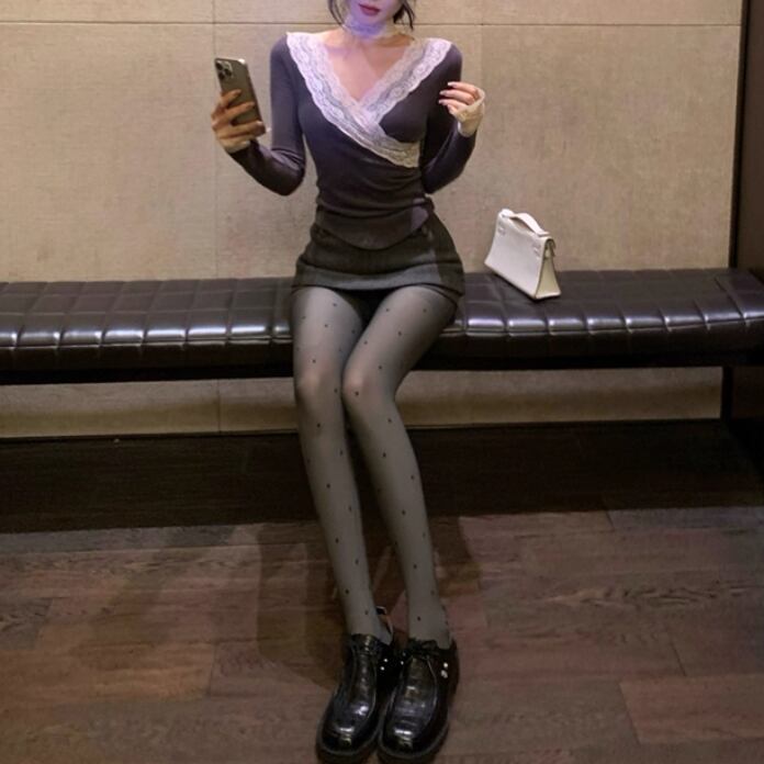 レースカラーアシメボタンドッキングトップス ・71106