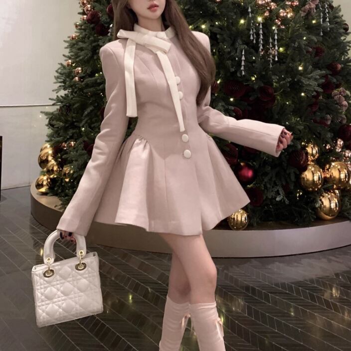 【2点セット】ショートジャケット+ファートリムティアードリボンキャミワンピ ・63097