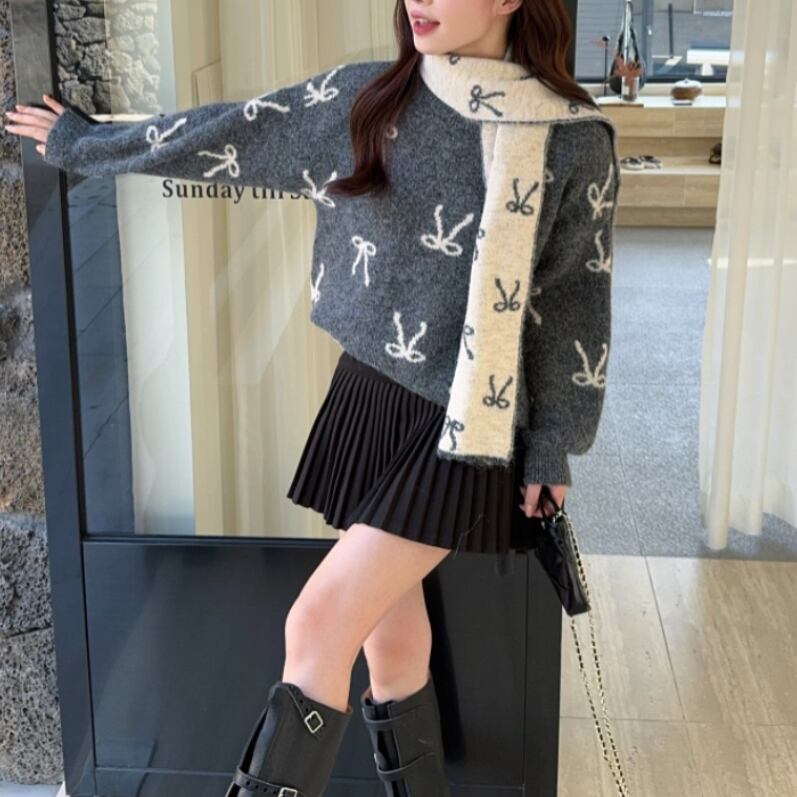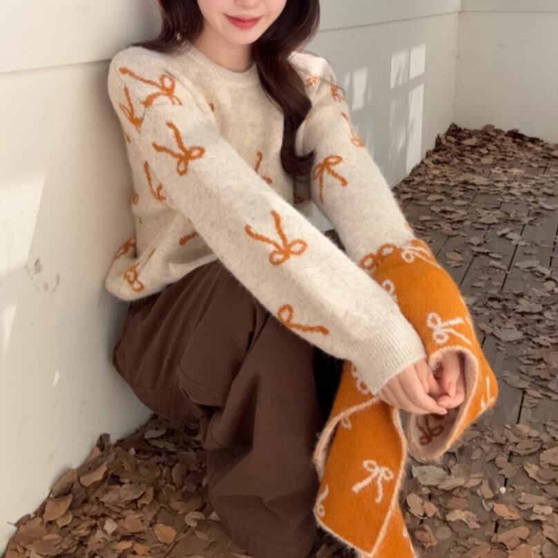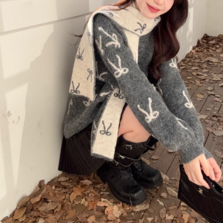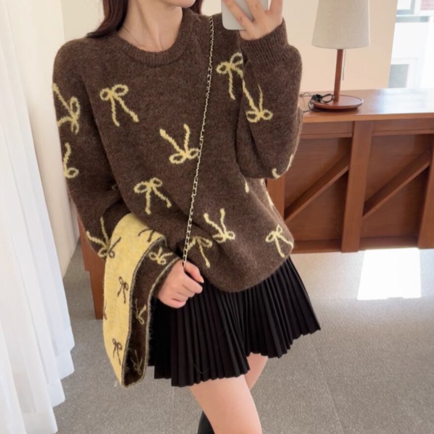 2色/フロントリボンフラワーラメニットトップス ・73833
