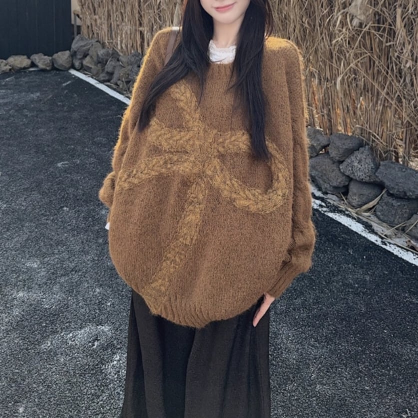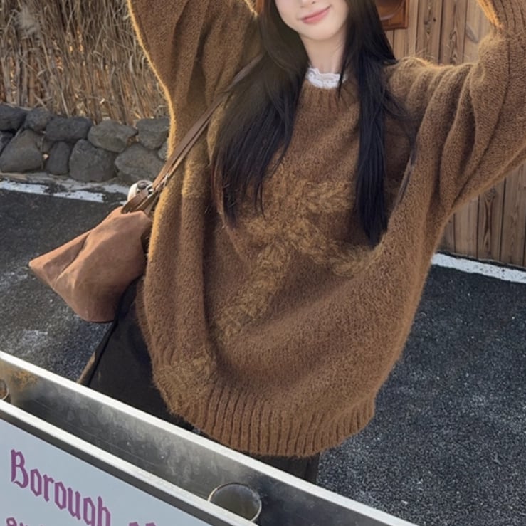 2色/フロントリボンフラワーラメニットトップス ・73833