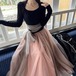 【2点セット】2色/ハイネックトップス+サイドベルトチェックジャンスカ ・72066