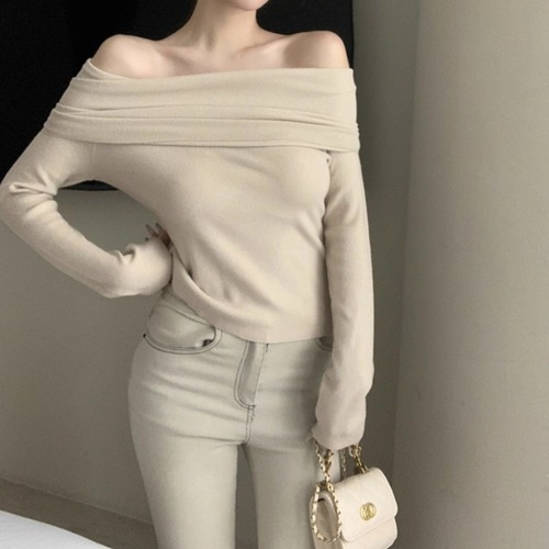 2色/フロントリボンフラワーラメニットトップス ・73833