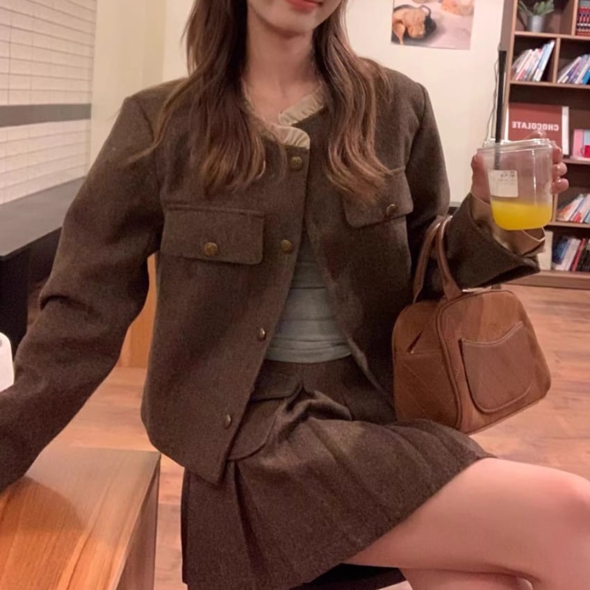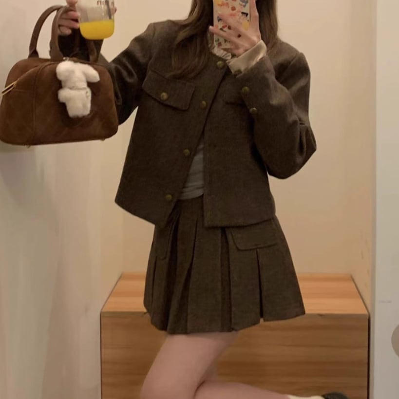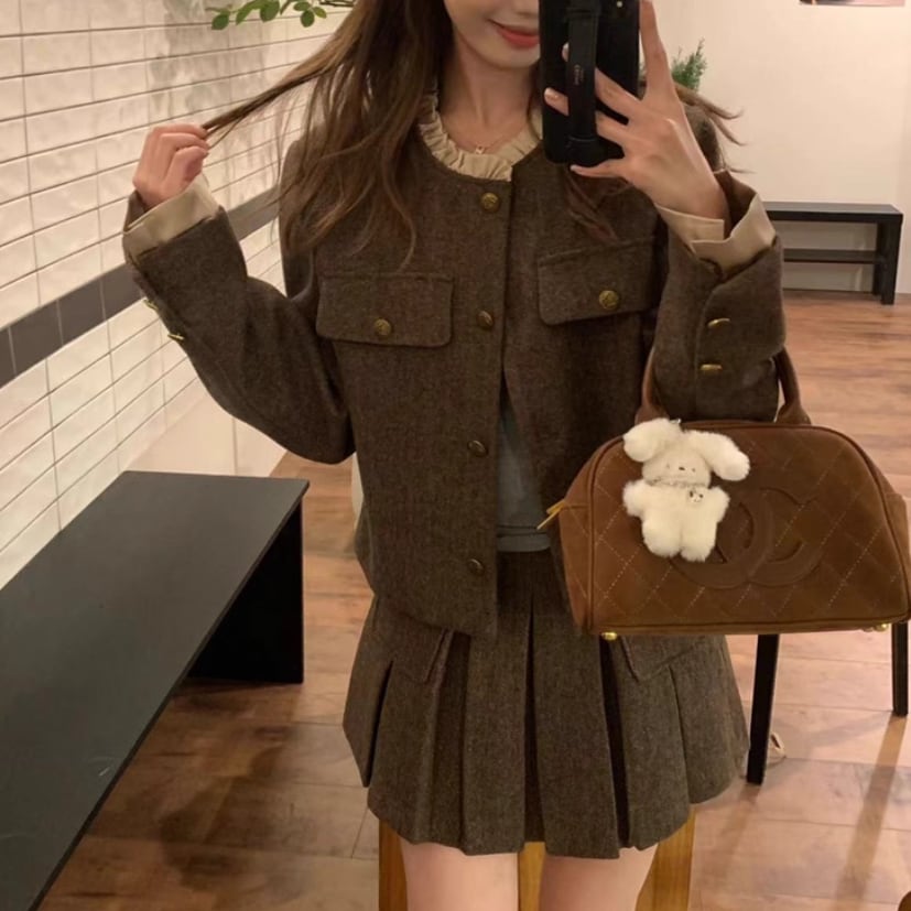 【2点セット】レイヤード風ツイードジャケット+プリーツスカート ・65693