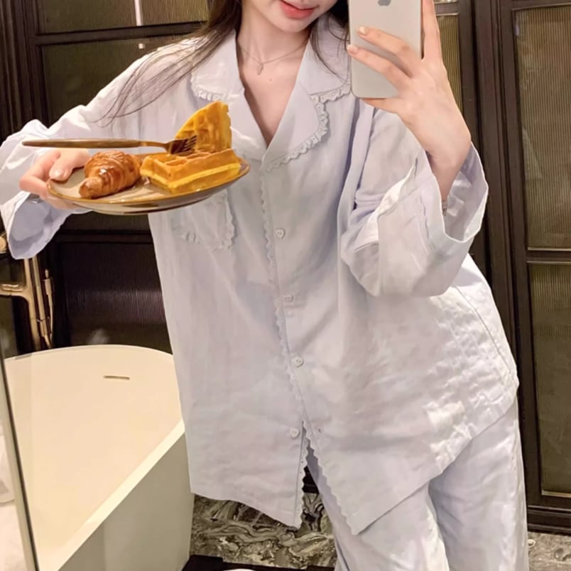 カーデ付きレーストリムリボン柄ルームウェア ・73706