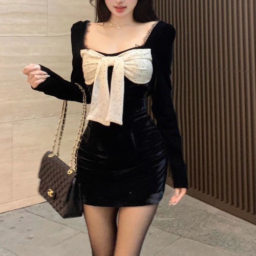 2色/切替ストライプリボンプリーツワンピ ・63127