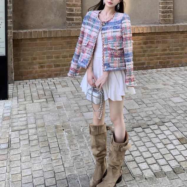 2色/エコファーバイカラーリボンジャケット ・73855