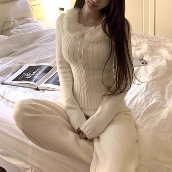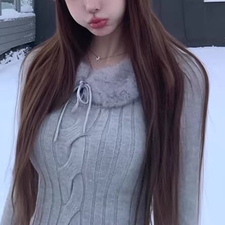 2色/フロントリボンフラワーラメニットトップス ・73833