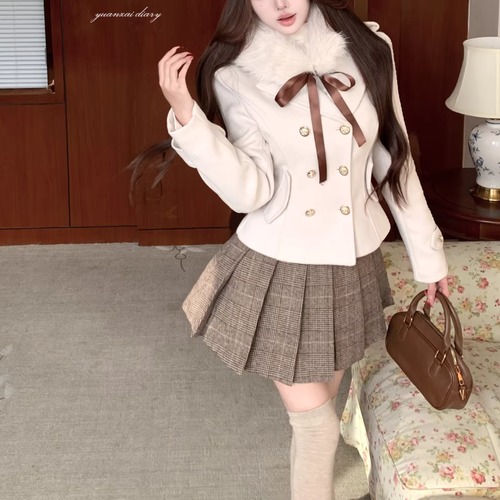 【2点セット】レイヤード風ツイードジャケット+プリーツスカート ・65693