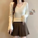 【3点セット】2色/フェアアイル柄クルーネックニットプルオーバー+ミニスカ+マフラー ・74051