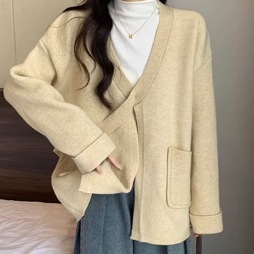 2色/ノルディック柄ポロカラーニットカーデ ・72764