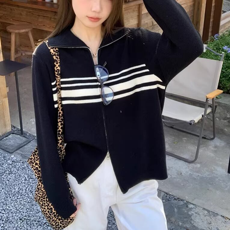 3色/ハイネックドロップショルダーニットトップス ・74007