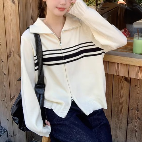 カットワークデザインリブニットトップス ・74005