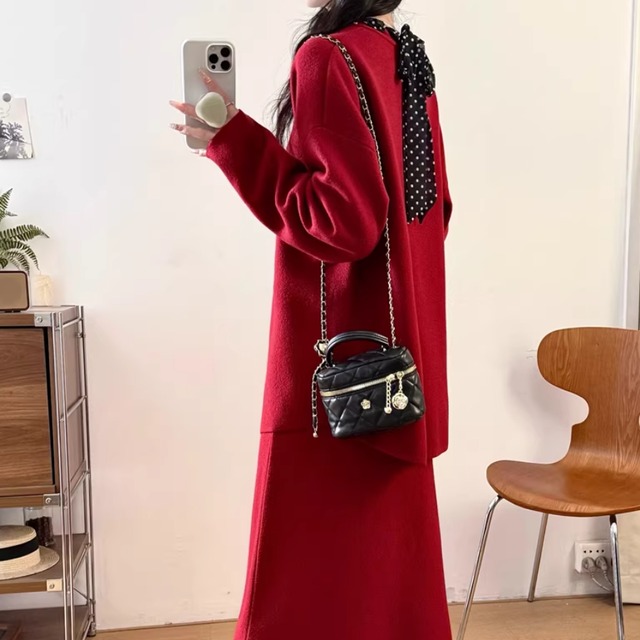 【2点セット】2色/ドットバックリボンニットプルオーバー+マキシスカート ・73989