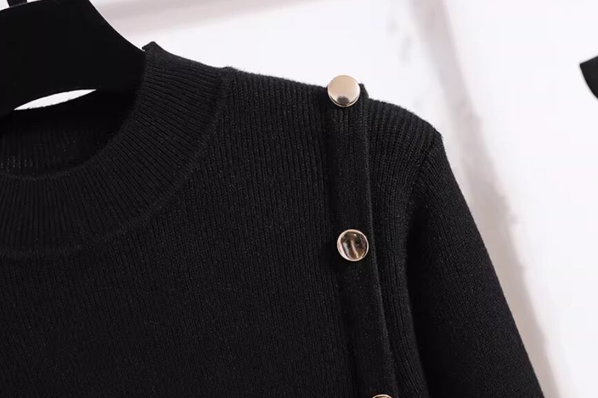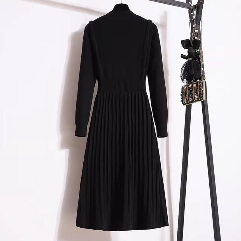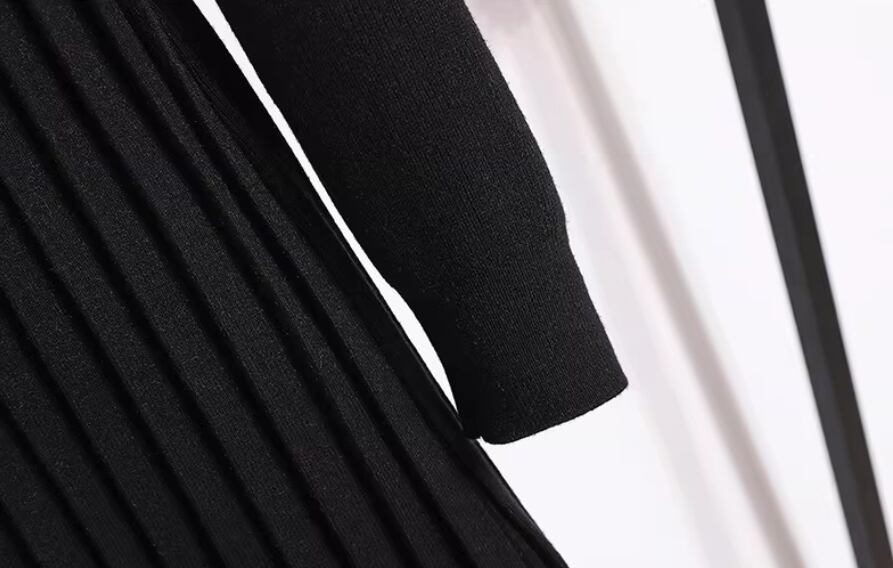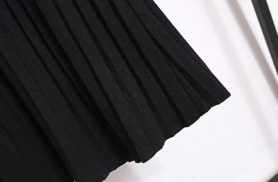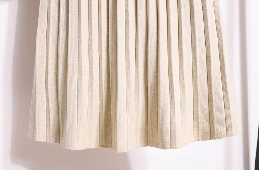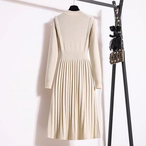 【2点セット】2色/ドットバックリボンニットプルオーバー+マキシスカート ・73989