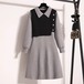 2色/切替ストライプリボンプリーツワンピ ・63127