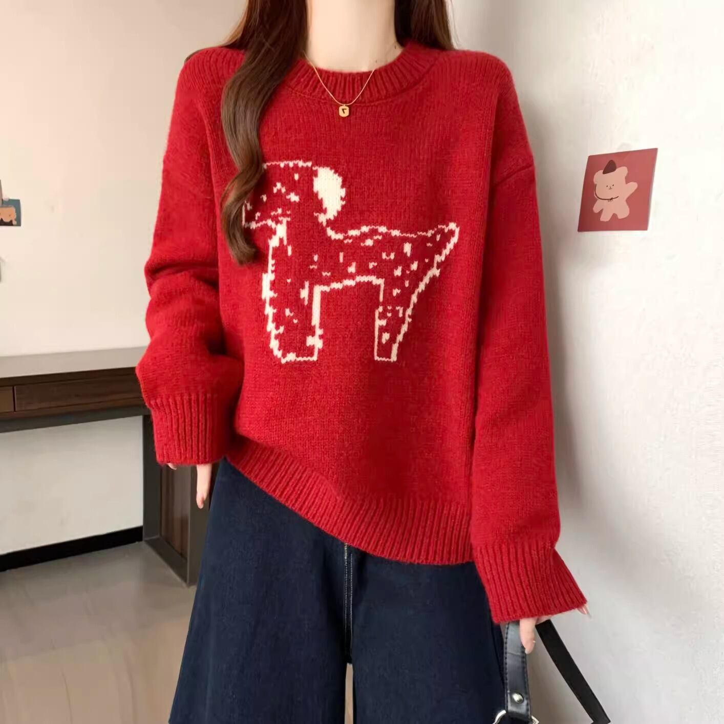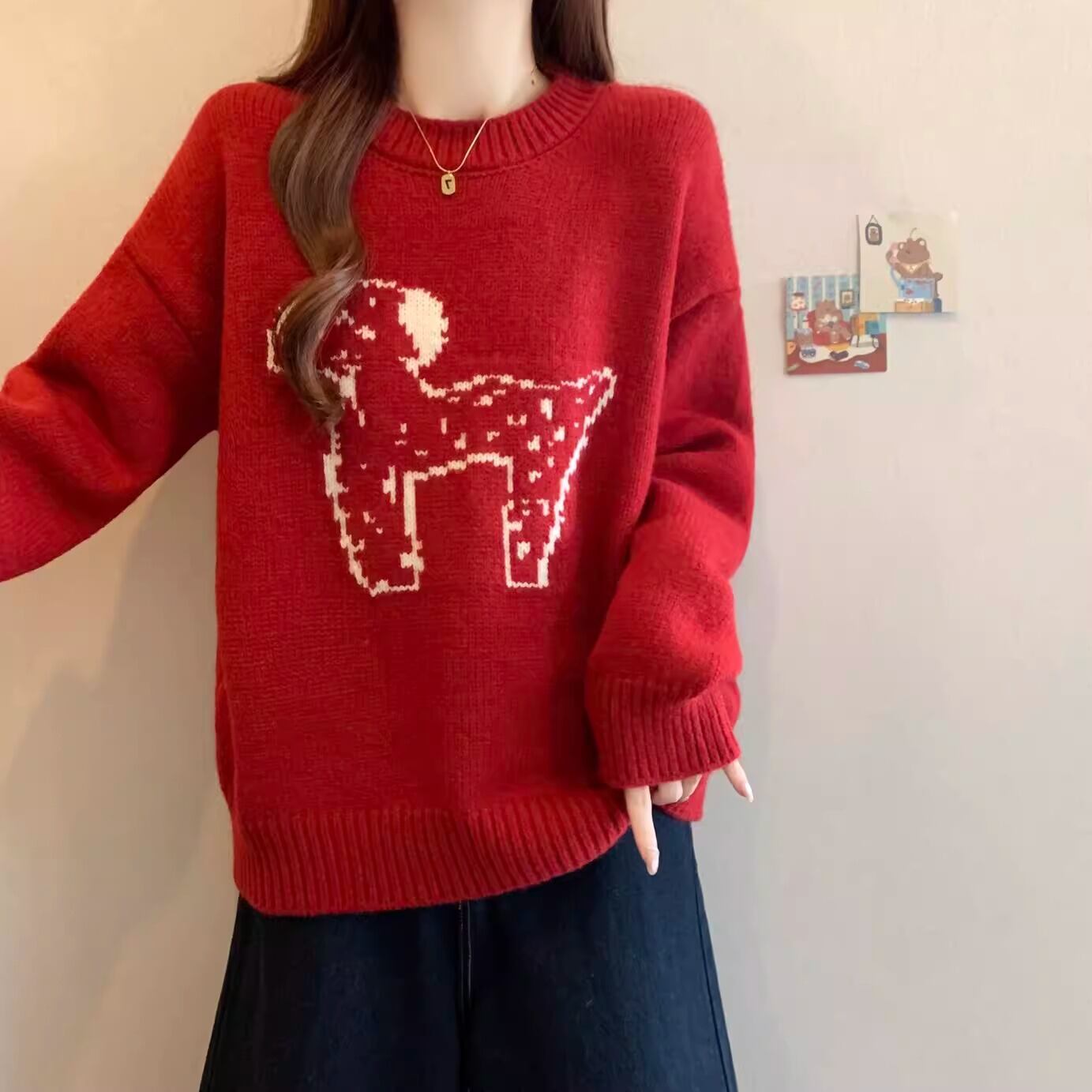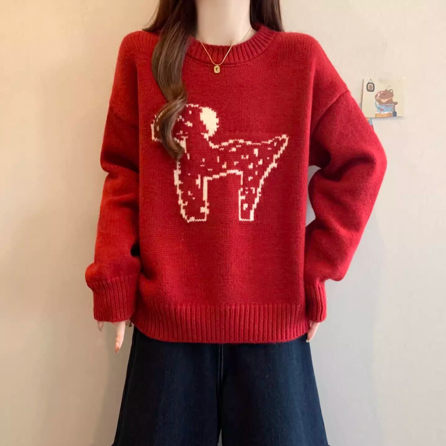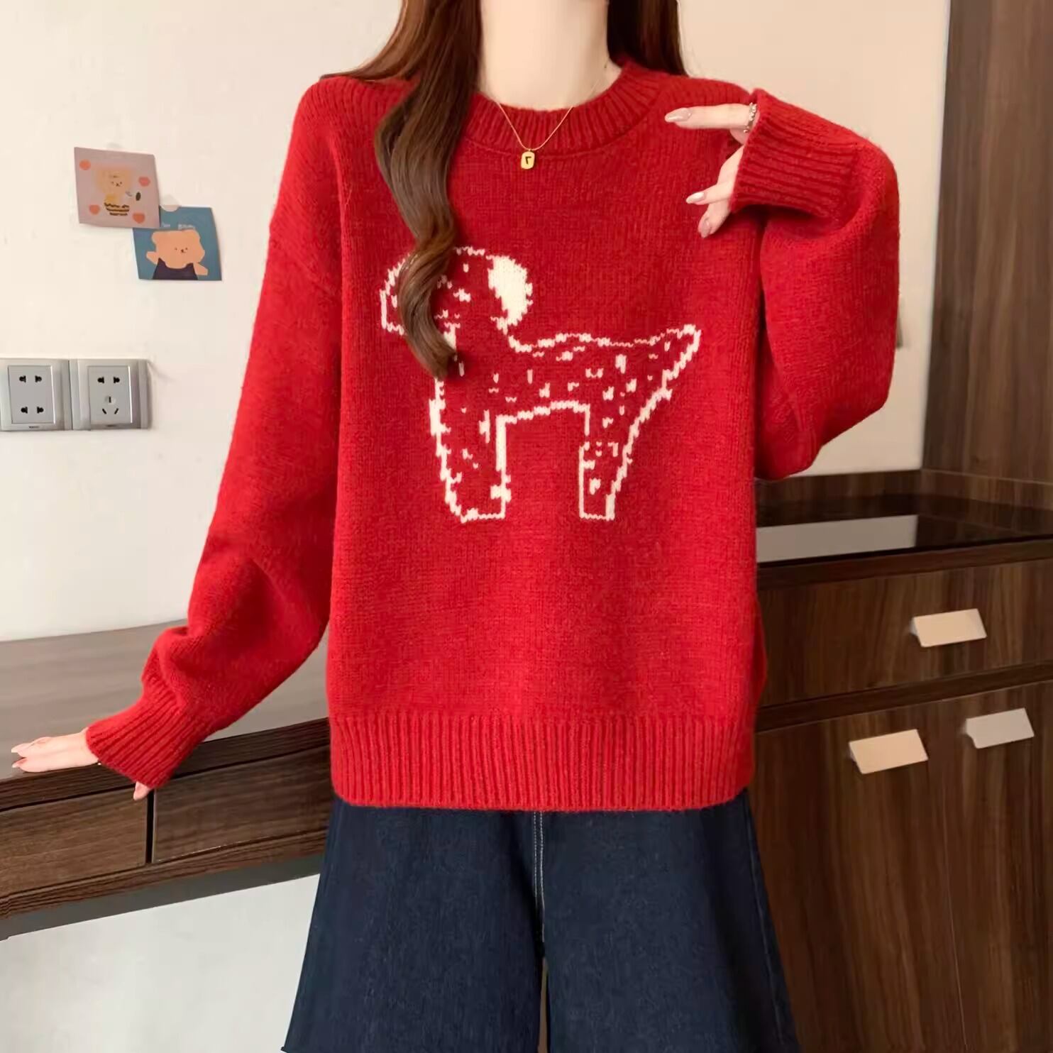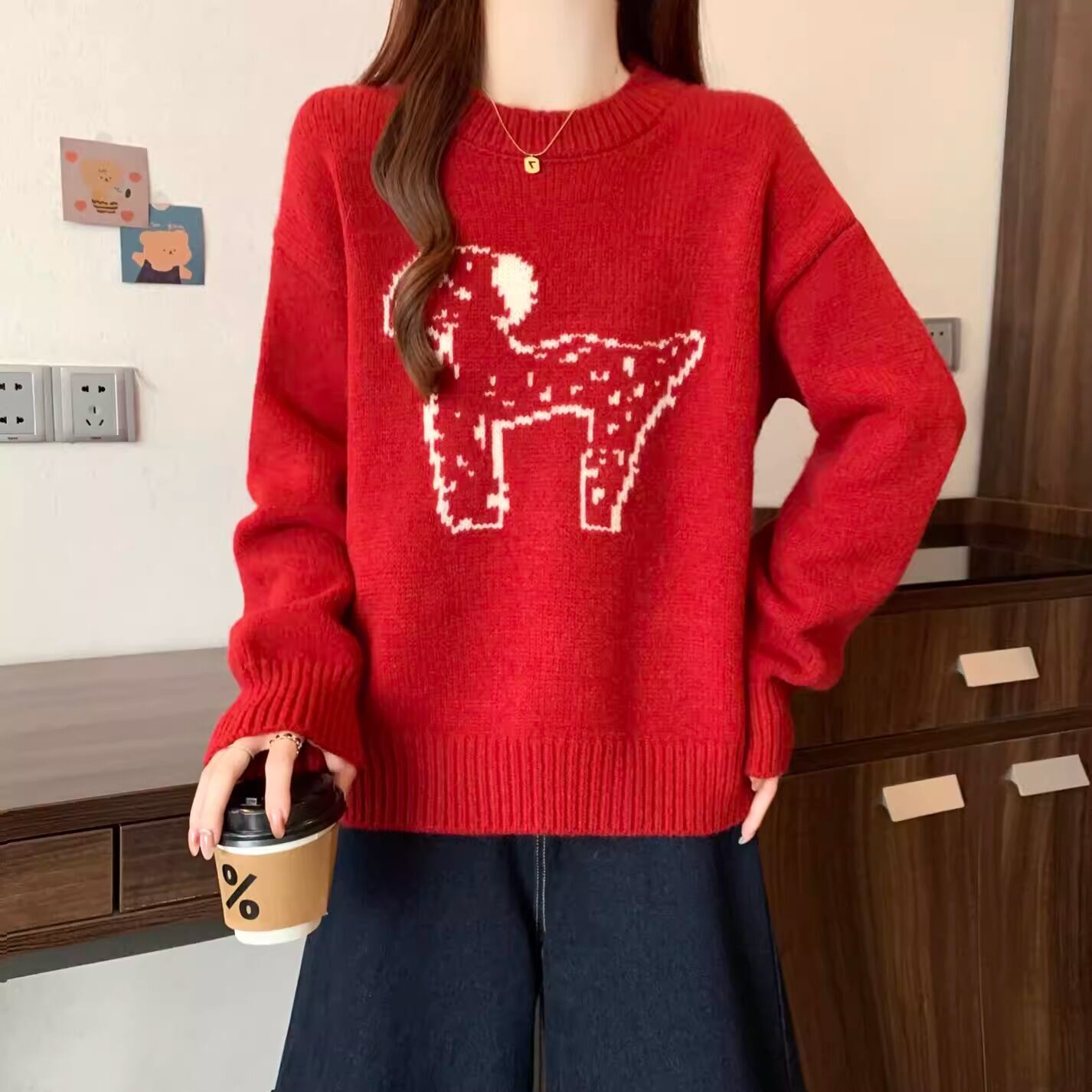 アニマルモチーフジャガードニットプルオーバー ・73976