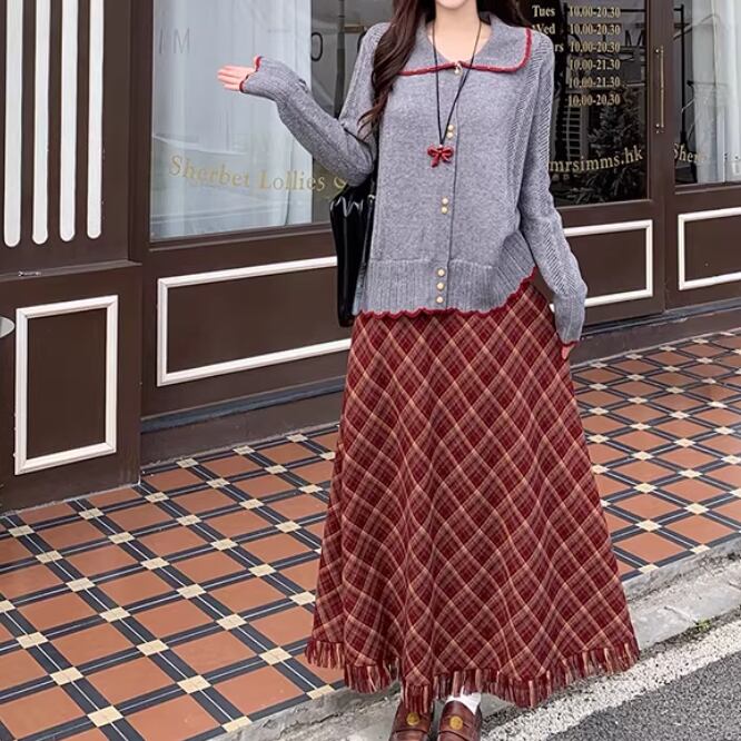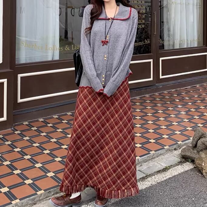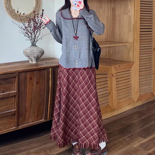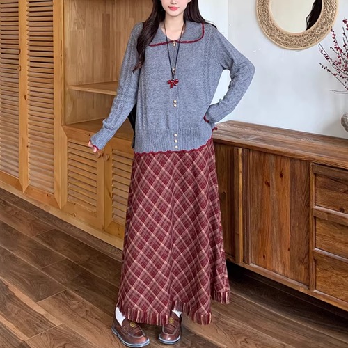 ▽Instagram「新作情報配信中」 フォローお願いいたします。 https://www.instagram.com/sucrier_closet/ ▼カラー グレー+レッド ▼サイズ [ Lサイズ ] トップス:着丈60cm バスト108cm 肩幅40cm 袖丈58cm スカート:着丈88cm ウエスト72cm ヒップ108cm [ XLサイズ ] トップス:着丈61cm バスト112cm 肩幅41cm 袖丈59cm スカート:着丈89cm ウエスト78cm ヒップ112cm [ 2XLサイズ ] トップス:着丈62cm バスト116cm 肩幅42cm 袖丈60cm スカート:着丈90cm ウエスト84cm ヒップ116cm [ 3XLサイズ ] トップス:着丈63cm バスト120cm 肩幅43cm 袖丈61cm スカート:着丈91cm ウエスト90cm ヒップ120cm [ 4XLサイズ ] トップス:着丈64cm バスト124cm 肩幅44cm 袖丈62cm スカート:着丈92cm ウエスト96cm ヒップ124cm ※1-3cm程度の誤差がある場合がございます。予めご了承ください。 ▼シーズン 秋冬 ▼同じカテゴリの商品はこちら https://www.sucrier.jp/categories/1737171 ▽お支払い方法 ・クレジットカード決済 ・キャリア決済 (docomo/au/Softbank/Y!mobile) ・後払い決済 (商品お届け後コンビニ払いなど) ▽注意点 ※こちらの商品は決済から10日-3週間前後でのお届けとなります。 ※配送日時指定等に関しては、ご指定できないことご了承くださいませ。 ※できる限り早くお届けできるように手配させて頂きます。 ※検品はしておりますが、もし届いた商品に不備がありましたら、誠実に対応させていただきます。 商品ID:SC073978