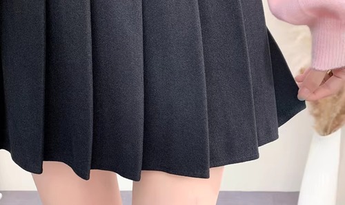 【2点セット】2色/ハイネックトップス+サイドベルトチェックジャンスカ ・72066