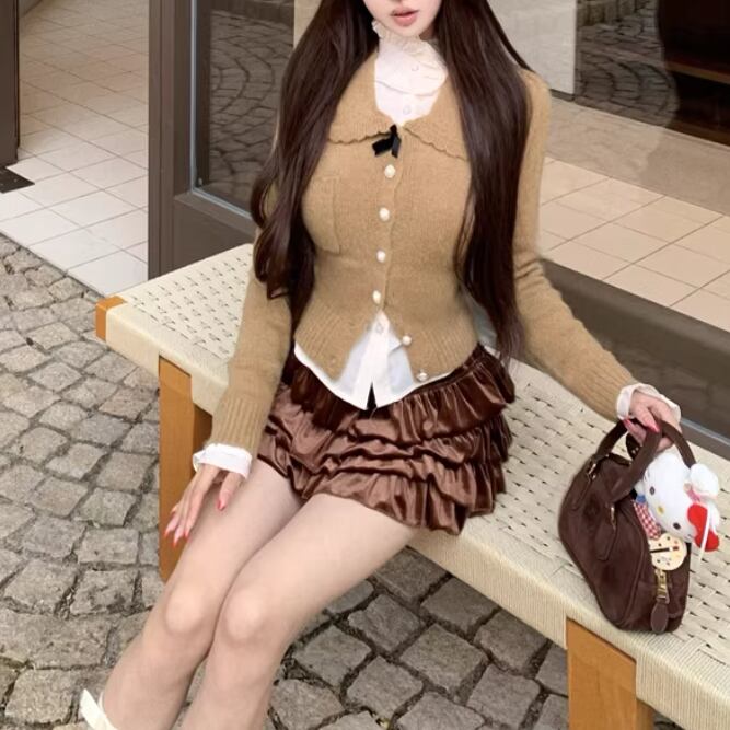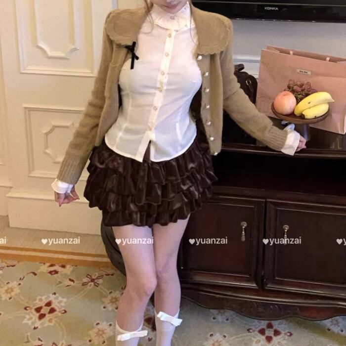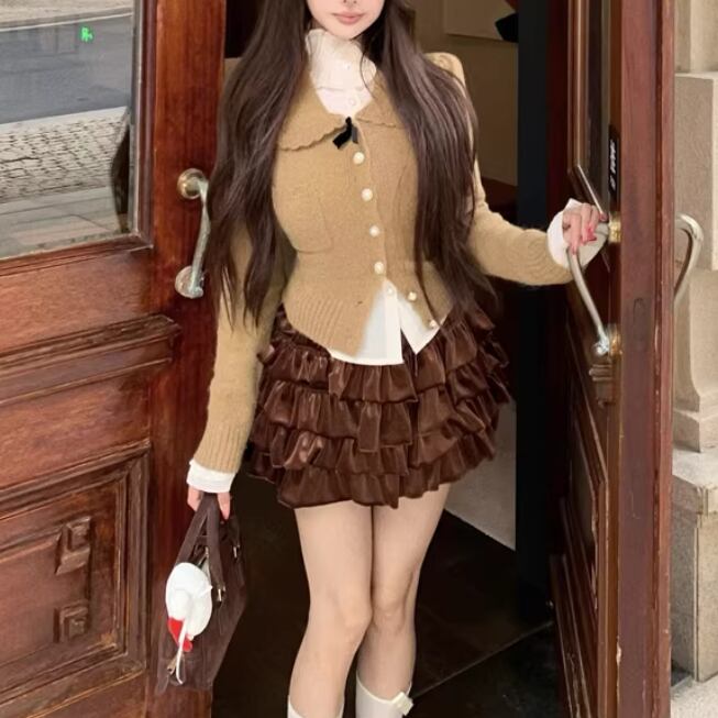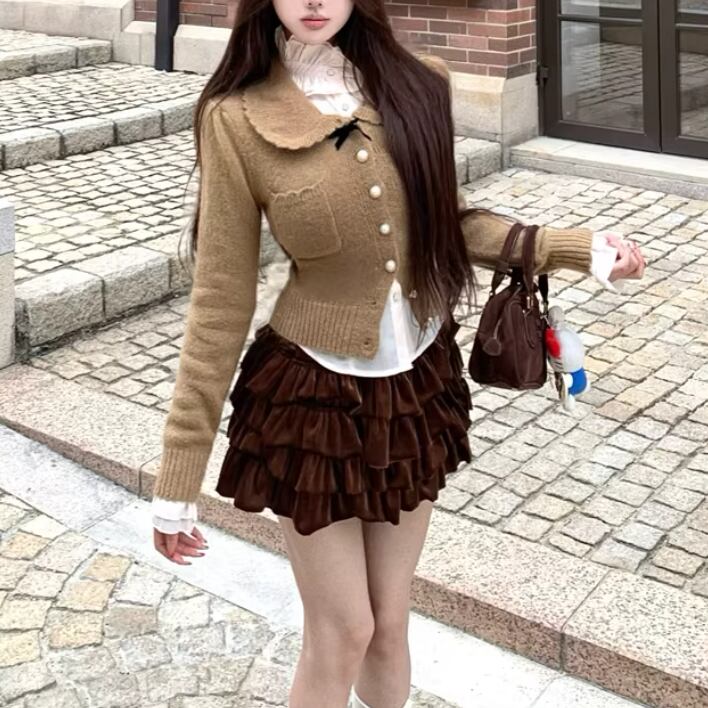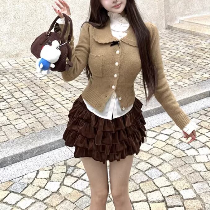 ▽Instagram「新作情報配信中」 フォローお願いいたします。 https://www.instagram.com/sucrier_closet/ ▼サイズ [ Sサイズ ] カーデ:着丈51cm バスト86cm 肩幅33cm 袖丈60cm ブラウス:着丈52cm バスト88cm 袖丈65cm ウエスト74cm スカート:着丈36cm ウエスト61cm [ Mサイズ ] カーデ:着丈52cm バスト90cm 肩幅34cm 袖丈61cm ブラウス:着丈53cm バスト92cm 袖丈66cm ウエスト78cm スカート:着丈37cm ウエスト65cm [ Lサイズ ] カーデ:着丈53cm バスト94cm 肩幅35cm 袖丈62cm ブラウス:着丈54cm バスト96cm 袖丈67cm ウエスト82cm スカート:着丈38cm ウエスト69cm ※1-3cm程度の誤差がある場合がございます。予めご了承ください。 ▼シーズン 秋,冬 ▼同じカテゴリの商品はこちら https://www.sucrier.jp/categories/1737171 ▽お支払い方法 ・クレジットカード決済 ・キャリア決済 (docomo/au/Softbank/Y!mobile) ・後払い決済 (商品お届け後コンビニ払いなど) ▽注意点 ※こちらの商品は決済から10日-3週間前後でのお届けとなります。 ※配送日時指定等に関しては、ご指定できないことご了承くださいませ。 ※できる限り早くお届けできるように手配させて頂きます。 ※検品はしておりますが、もし届いた商品に不備がありましたら、誠実に対応させていただきます。 商品ID:SC073934