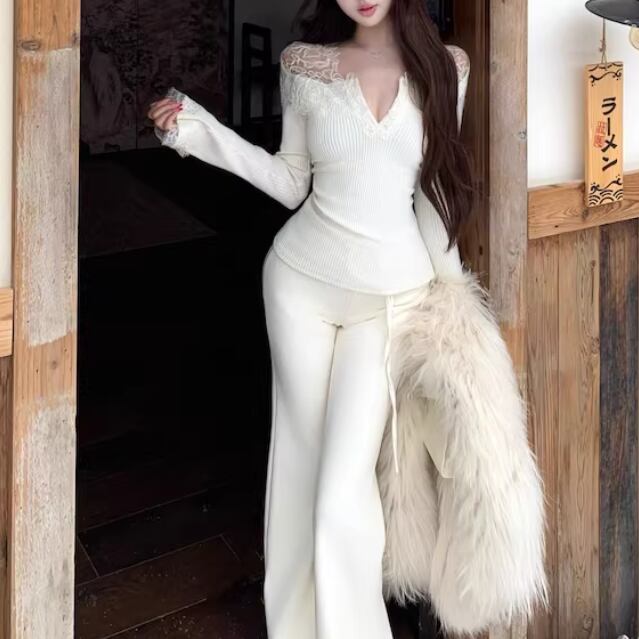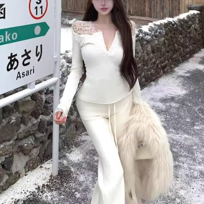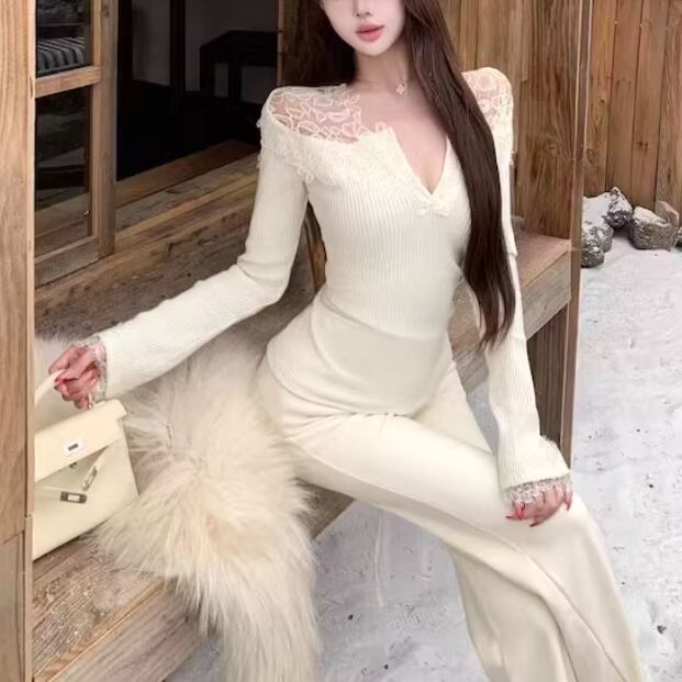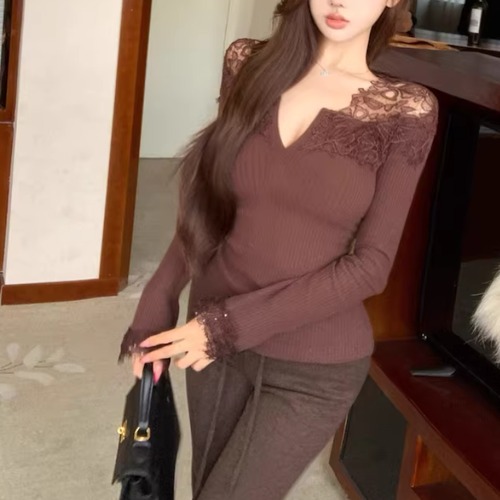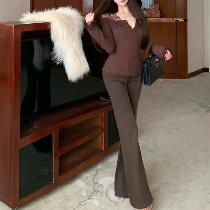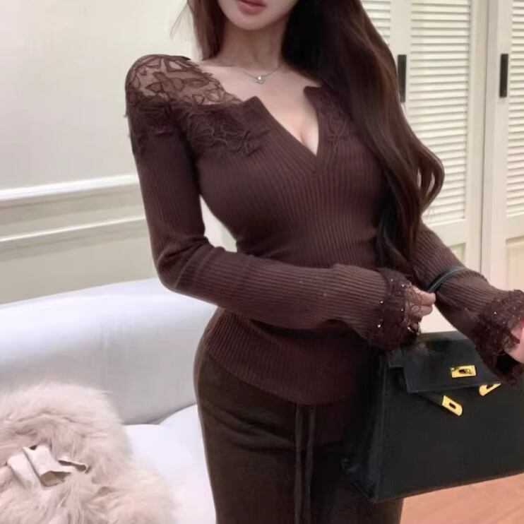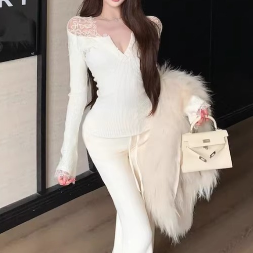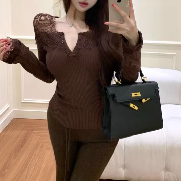 2色/フロントリボンフラワーラメニットトップス ・73833
