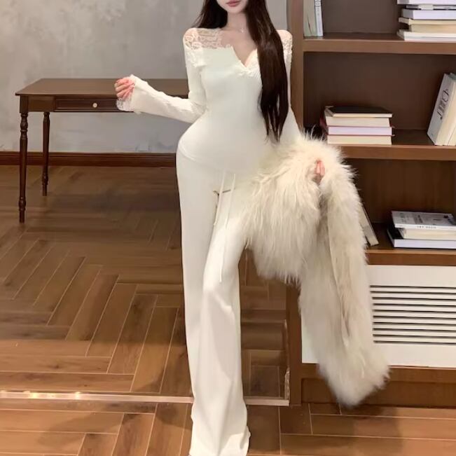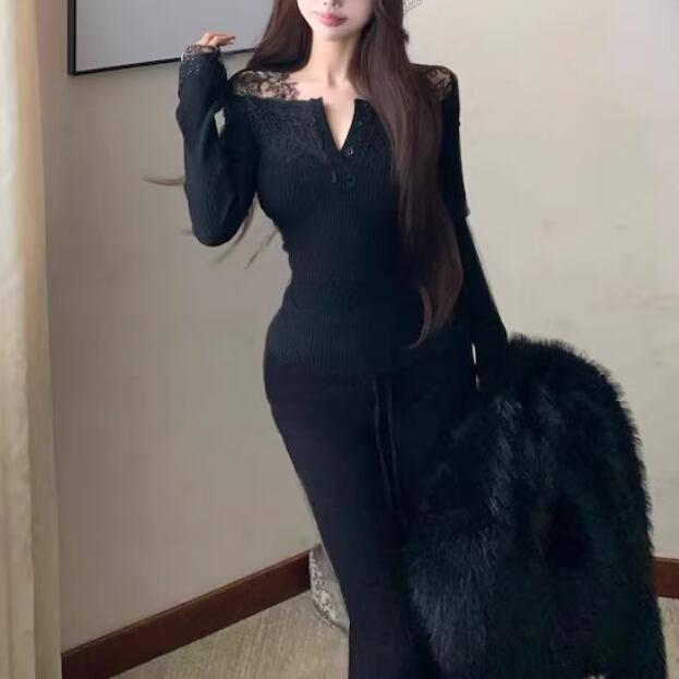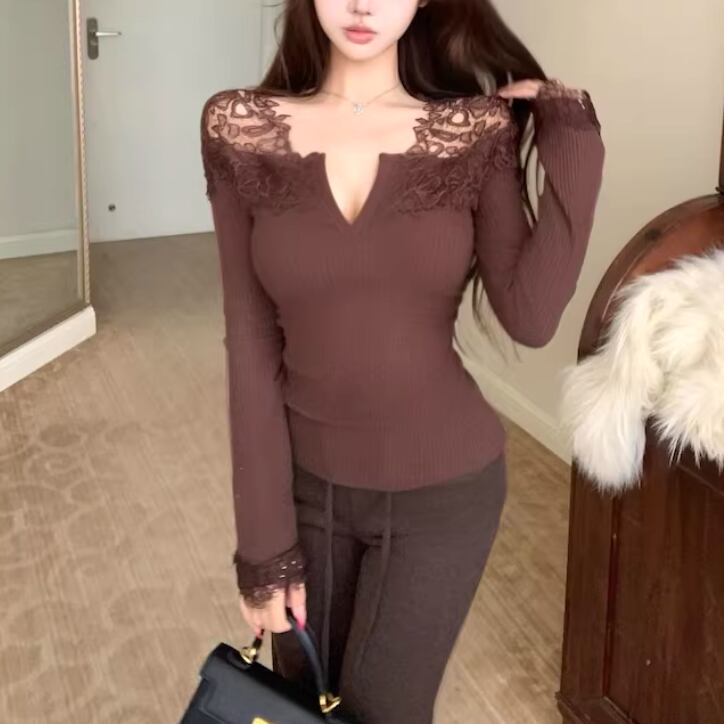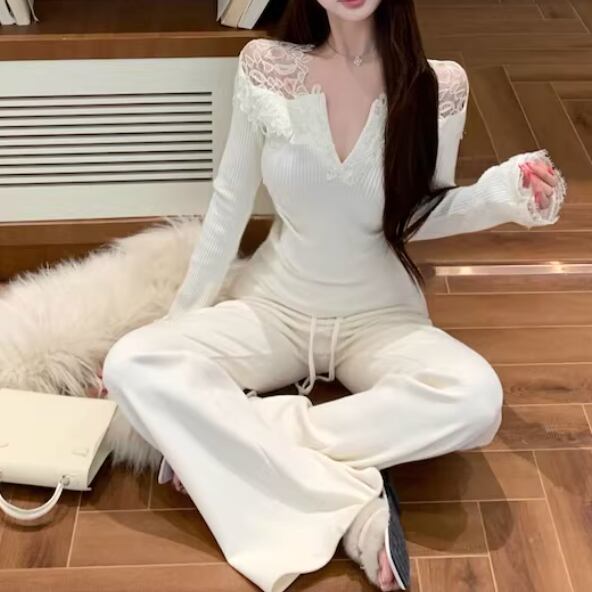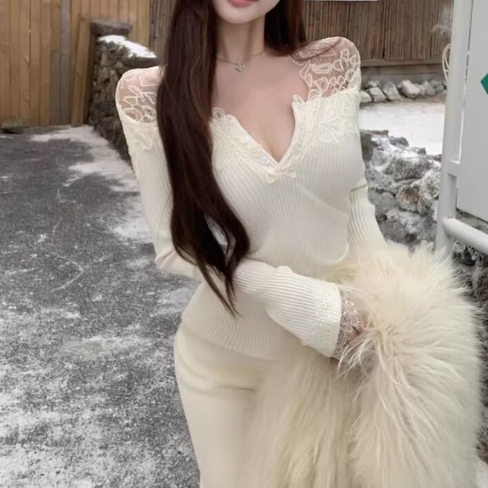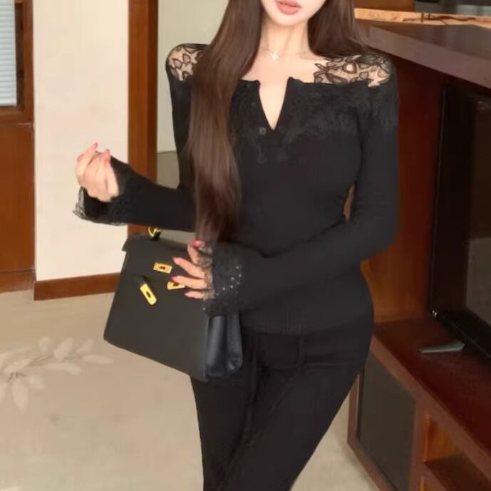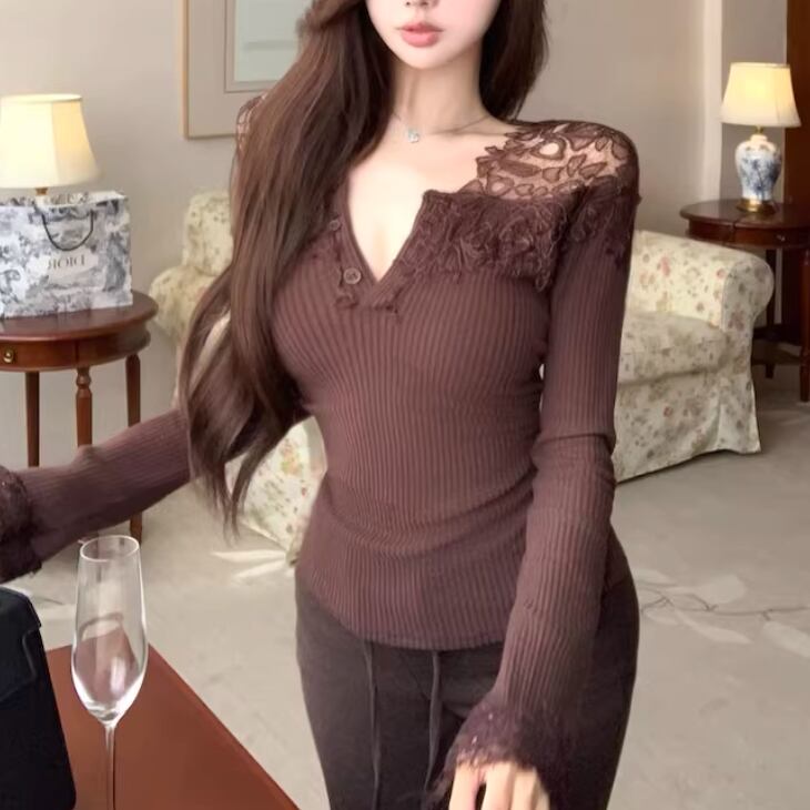 2色/フロントリボンフラワーラメニットトップス ・73833
