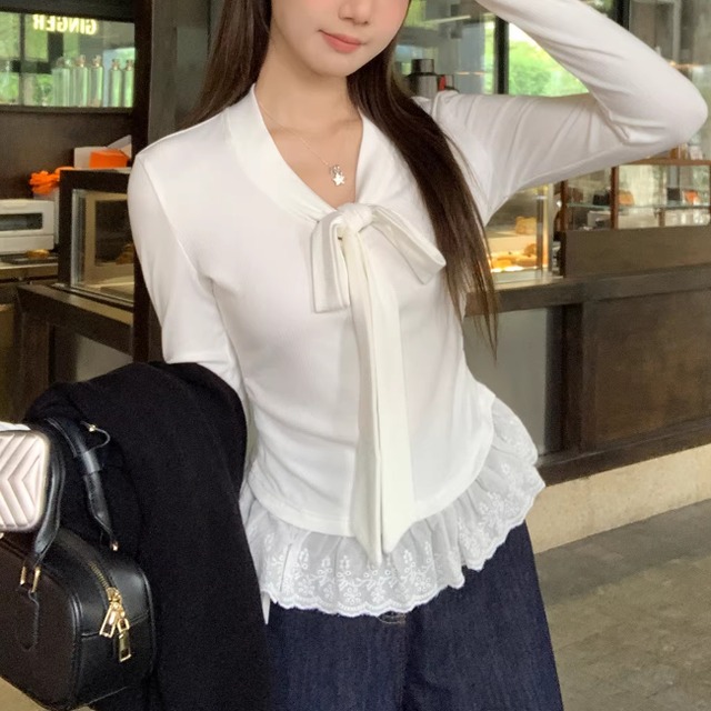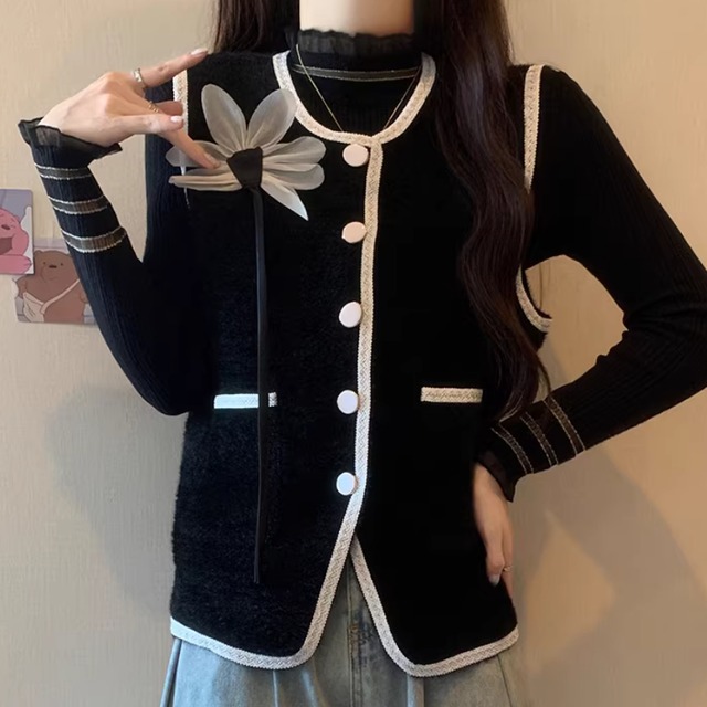 【2点セット】シアーフリルネックトップス+パイピングフラワーニットベスト ・73929