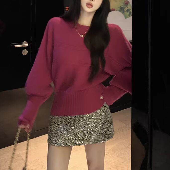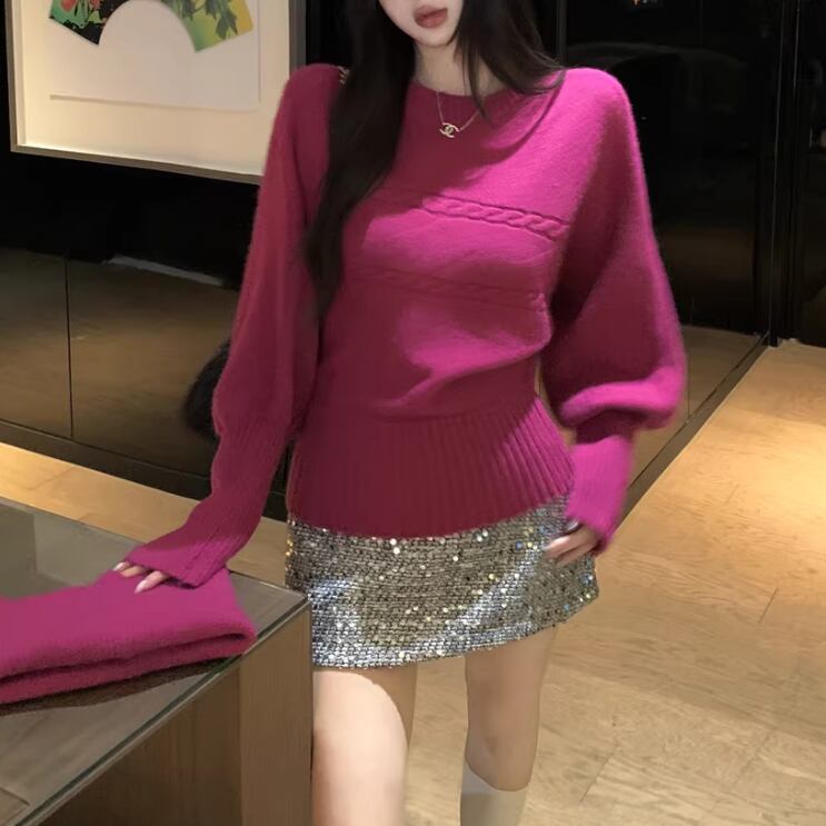 2色/アーガイルシャギーニットプルオーバー ・73928