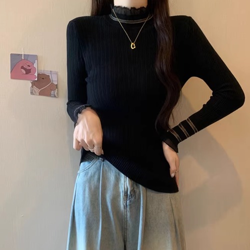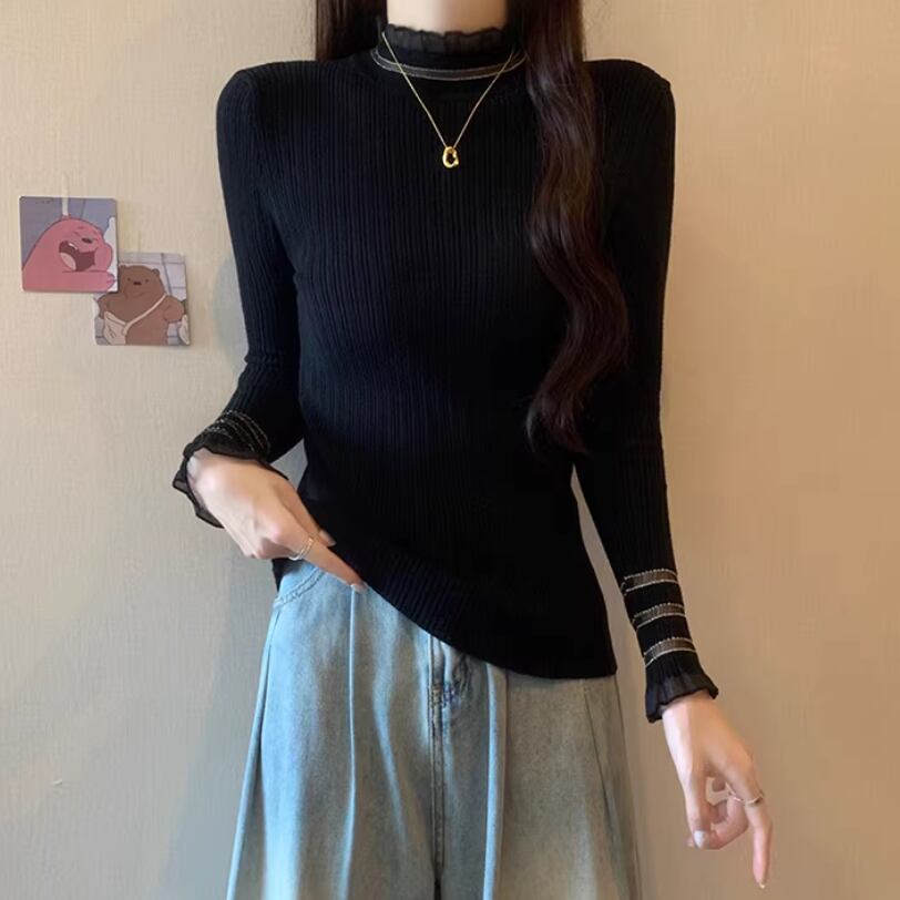 【2点セット】2色/ハイネックトップス+サイドベルトチェックジャンスカ ・72066