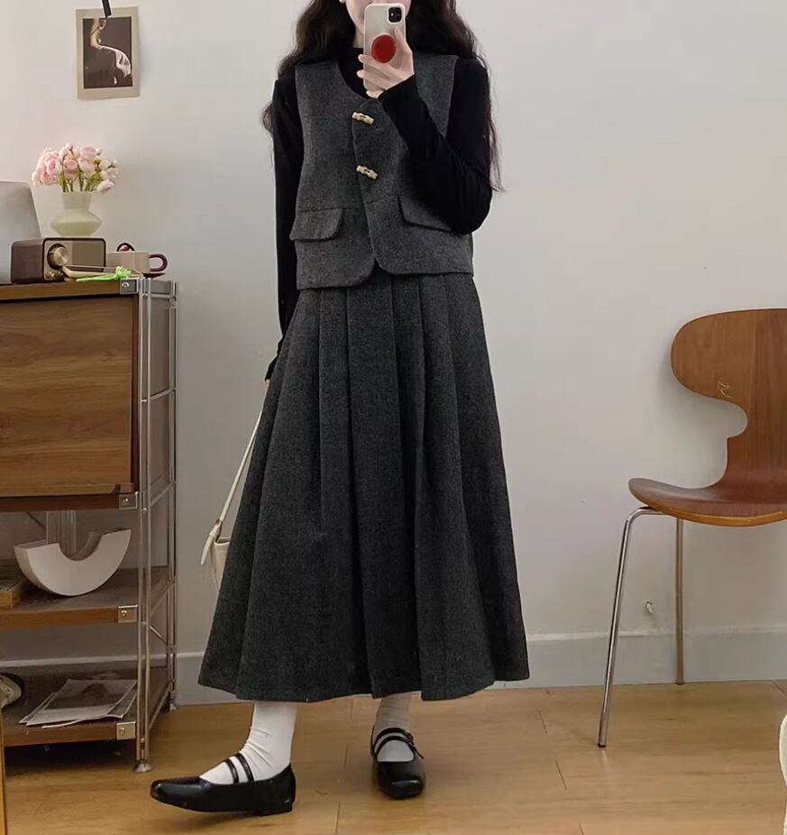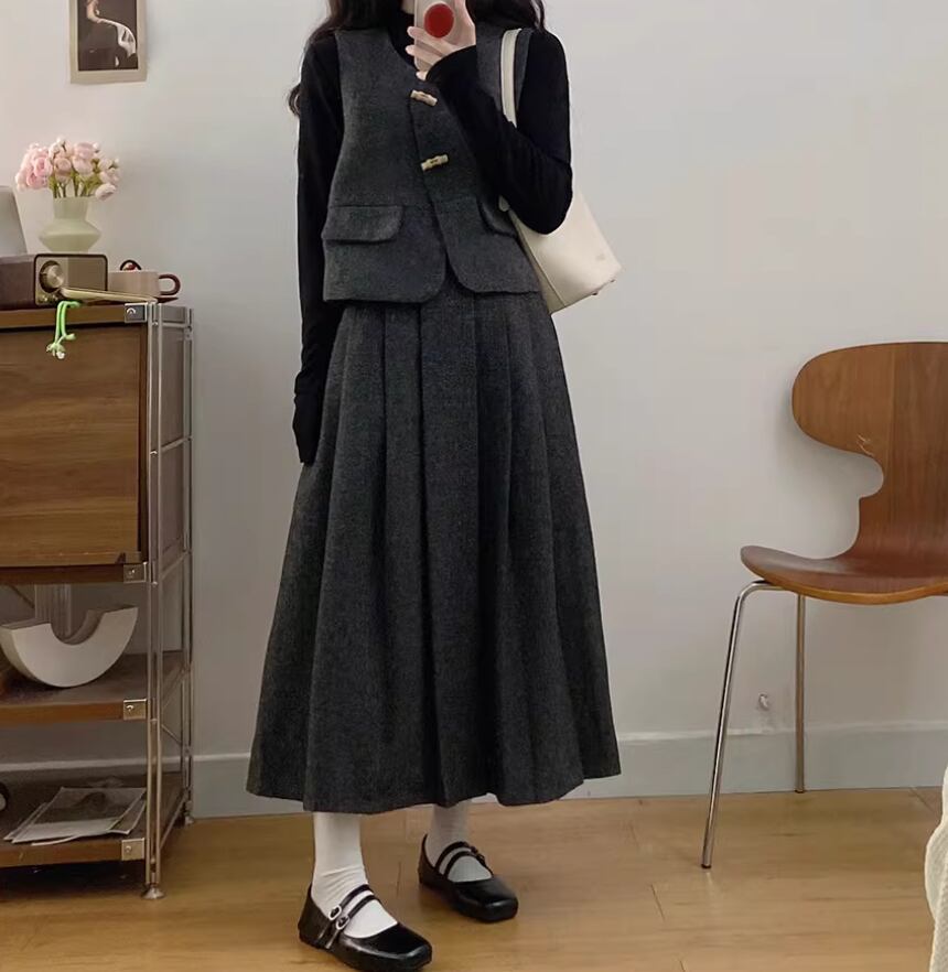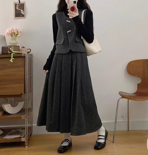 ▽Instagram「新作情報配信中」 フォローお願いいたします。 https://www.instagram.com/sucrier_closet/ ▼サイズ [ Mサイズ ] ベスト:着丈53cm バスト95cm トップス:着丈55cm バスト88cm 肩幅37cm 袖丈65cm スカート:着丈82cm ウエスト68cm [ Lサイズ ] ベスト:着丈54cm バスト99cm トップス:着丈56cm バスト92cm 肩幅38cm 袖丈66cm スカート:着丈83cm ウエスト72cm [ XLサイズ ] ベスト:着丈55cm バスト103cm トップス:着丈57cm バスト96cm 肩幅39cm 袖丈67cm スカート:着丈84cm ウエスト76cm [ 2XLサイズ ] ベスト:着丈56cm バスト107cm トップス:着丈58cm バスト100cm 肩幅40cm 袖丈68cm スカート:着丈85cm ウエスト80cm [ 3XLサイズ ] ベスト:着丈57cm バスト111cm トップス:着丈59cm バスト104cm 肩幅41cm 袖丈69cm スカート:着丈86cm ウエスト84cm [ 4XLサイズ ] ベスト:着丈58cm バスト115cm トップス:着丈60cm バスト108cm 肩幅42cm 袖丈70cm スカート:着丈87cm ウエスト88cm ※1-3cm程度の誤差がある場合がございます。予めご了承ください。 ▼シーズン 秋冬 ▼同じカテゴリの商品はこちら https://www.sucrier.jp/categories/1737171 ▽お支払い方法 ・クレジットカード決済 ・キャリア決済 (docomo/au/Softbank/Y!mobile) ・後払い決済 (商品お届け後コンビニ払いなど) ▽注意点 ※こちらの商品は決済から10日-3週間前後でのお届けとなります。 ※配送日時指定等に関しては、ご指定できないことご了承くださいませ。 ※できる限り早くお届けできるように手配させて頂きます。 ※検品はしておりますが、もし届いた商品に不備がありましたら、誠実に対応させていただきます。 商品ID:SC073926