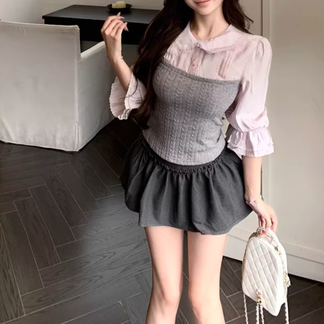 【2点セット】キャンディスリーブドッキングブラウス+フレアスカート ・73903