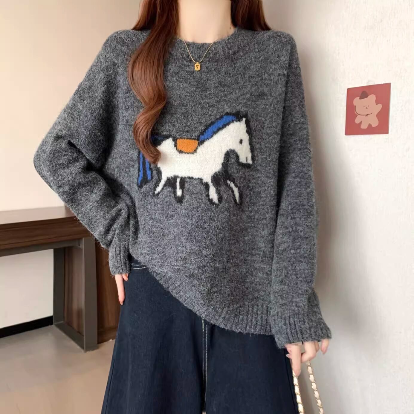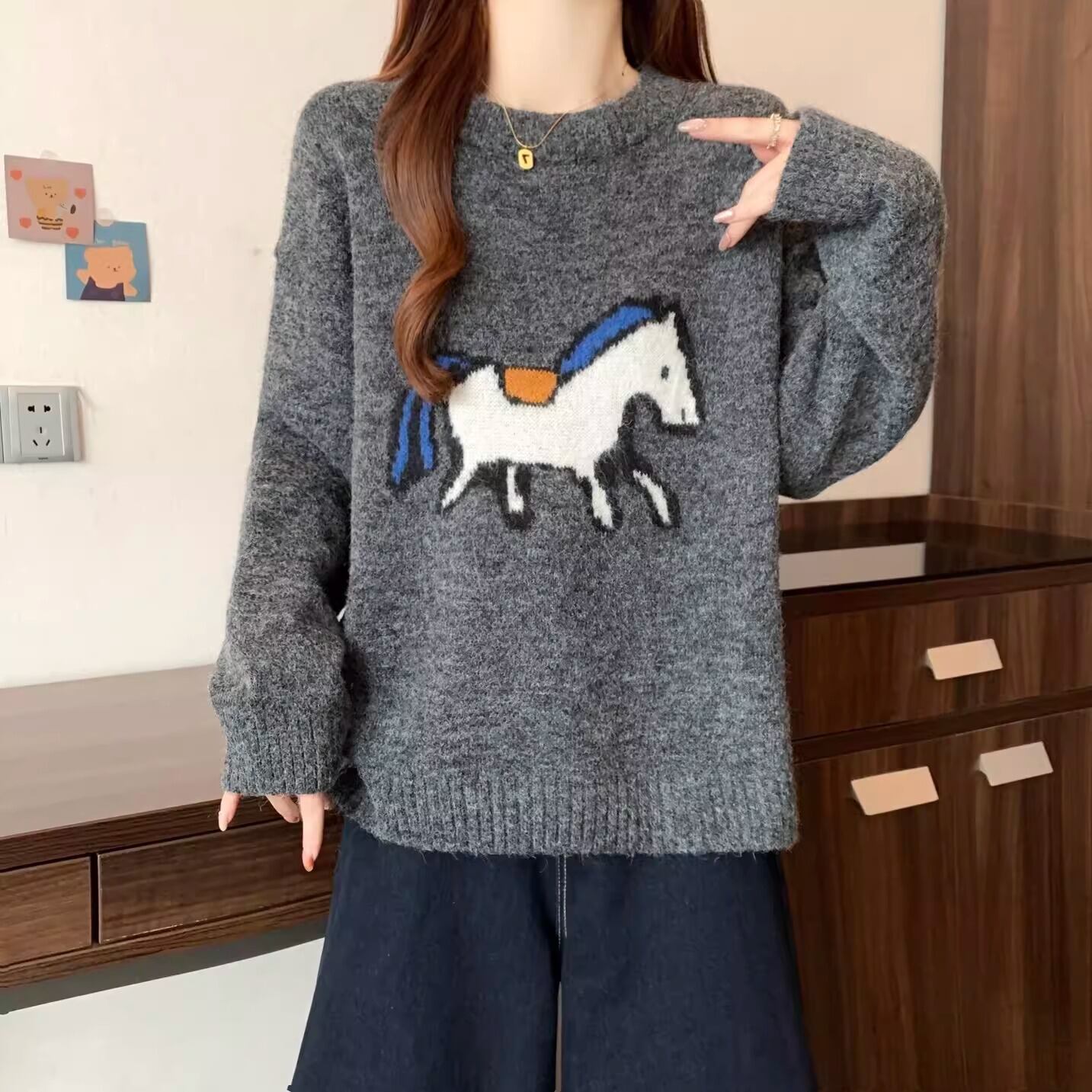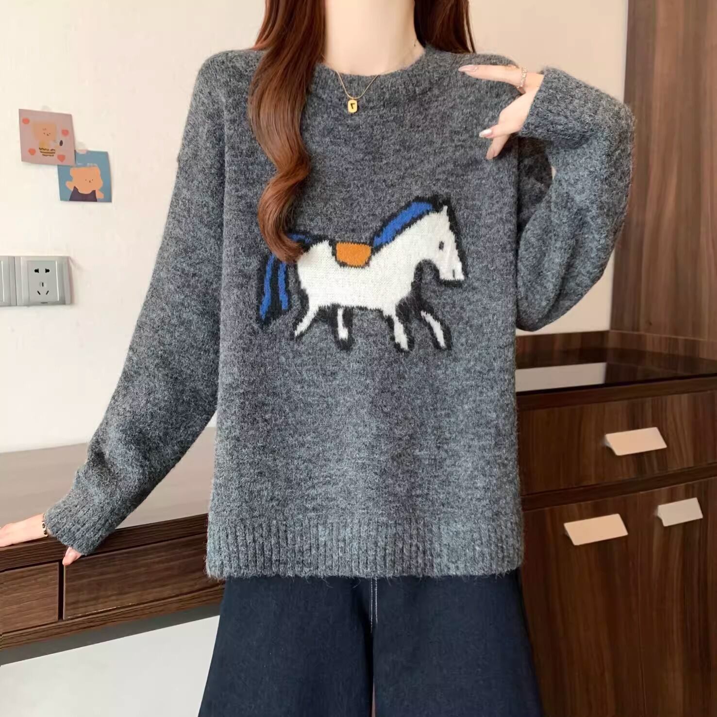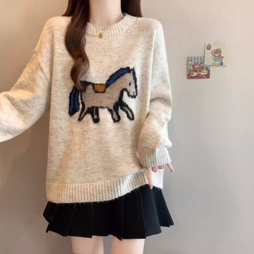 2色/クルーネックジャガードニットカーディガン ・73899
