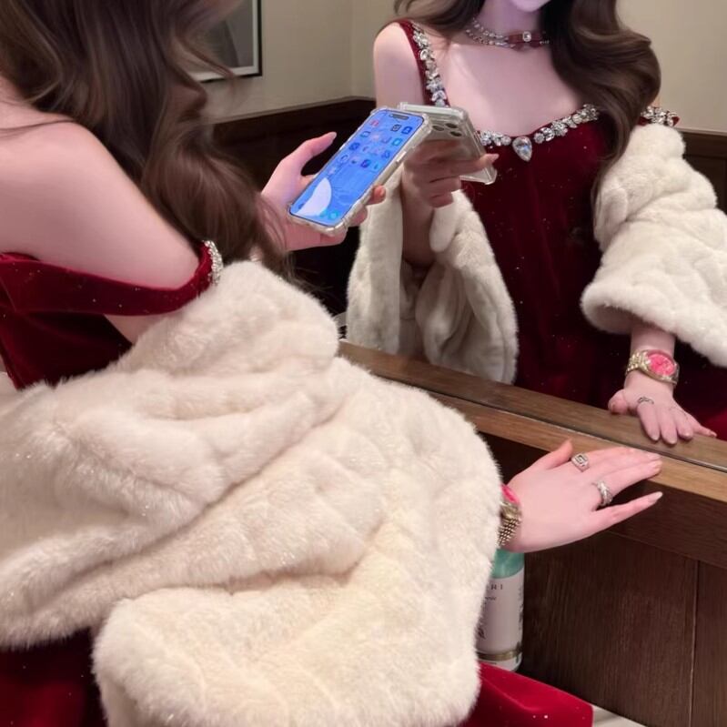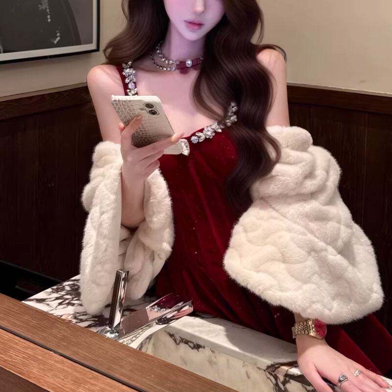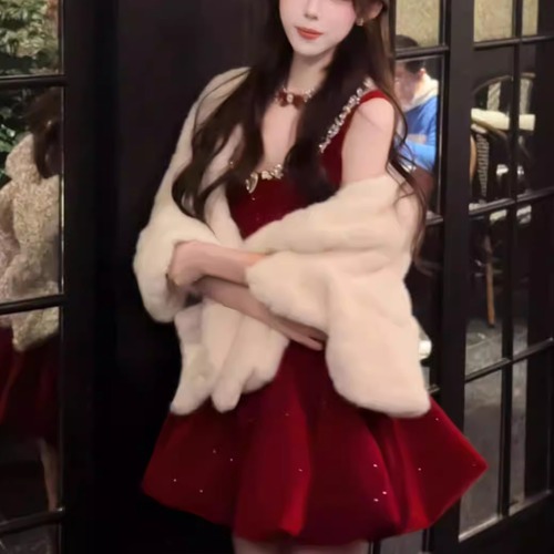 【2点セット】ショートジャケット+ファートリムティアードリボンキャミワンピ ・63097