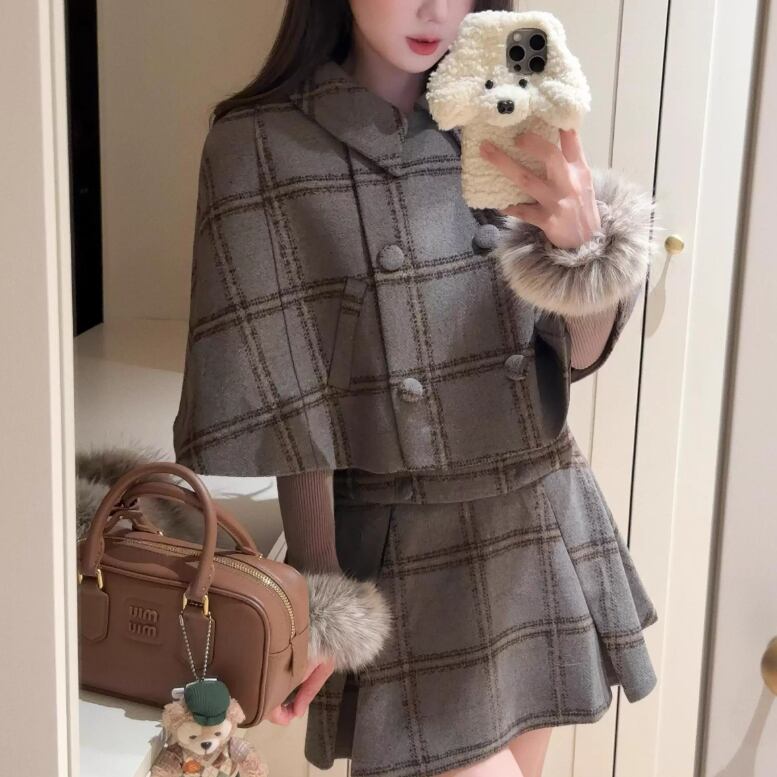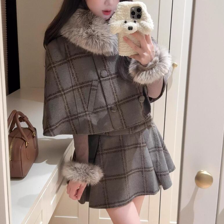 ▽Instagram「新作情報配信中」 フォローお願いいたします。 https://www.instagram.com/sucrier_closet/ ▼サイズ [ Sサイズ ] ケープ:着丈47.5cm 肩幅32.5cm 袖丈41.5cm スカート:着丈37.5cm ウエスト63cm インナートップス:着丈49cm バスト73cm 肩幅31.5cm 袖丈59cm [ Mサイズ ] ケープ:着丈48.5cm 肩幅33.5cm 袖丈42.5cm スカート:着丈38.5cm ウエスト67cm インナートップス:着丈50cm バスト77cm 肩幅32.5cm 袖丈60cm [ Lサイズ ] ケープ:着丈49.5cm 肩幅34.5cm 袖丈43.5cm スカート:着丈39.5cm ウエスト71cm インナートップス:着丈51cm バスト81cm 肩幅33.5cm 袖丈61cm [ XLサイズ ] ケープ:着丈50.5cm 肩幅35.5cm 袖丈44.5cm スカート:着丈40.5cm ウエスト75cm インナートップス:着丈52cm バスト85cm 肩幅34.5cm 袖丈62cm ※1-3cm程度の誤差がある場合がございます。予めご了承ください。 ▼シーズン 秋冬 ▼同じカテゴリの商品はこちら https://www.sucrier.jp/categories/1737171 ▽お支払い方法 ・クレジットカード決済 ・キャリア決済 (docomo/au/Softbank/Y!mobile) ・後払い決済 (商品お届け後コンビニ払いなど) ▽注意点 ※こちらの商品は決済から10日-3週間前後でのお届けとなります。 ※配送日時指定等に関しては、ご指定できないことご了承くださいませ。 ※できる限り早くお届けできるように手配させて頂きます。 ※検品はしておりますが、もし届いた商品に不備がありましたら、誠実に対応させていただきます。 商品ID:SC073880