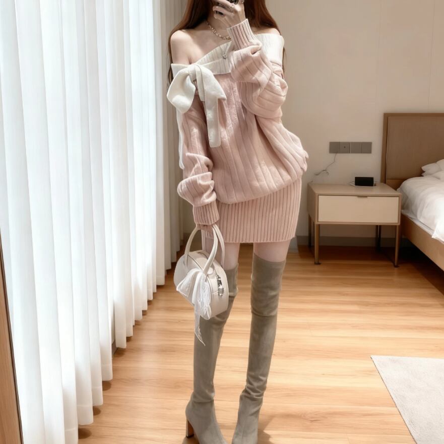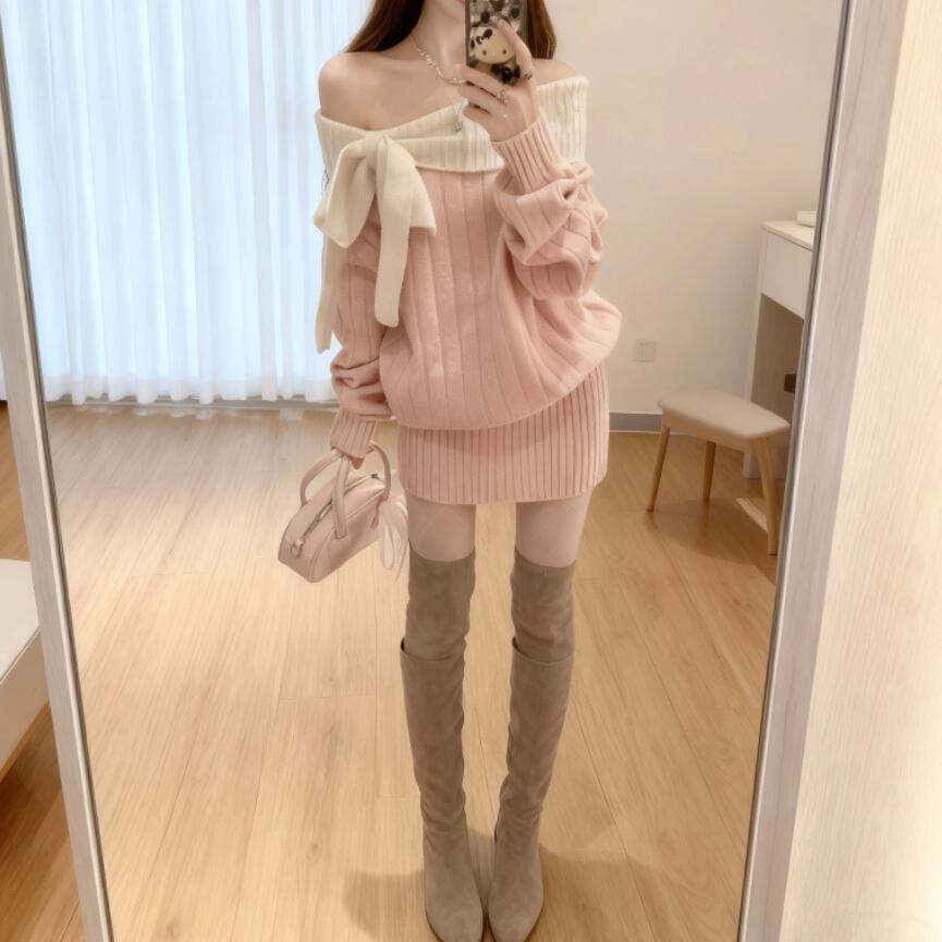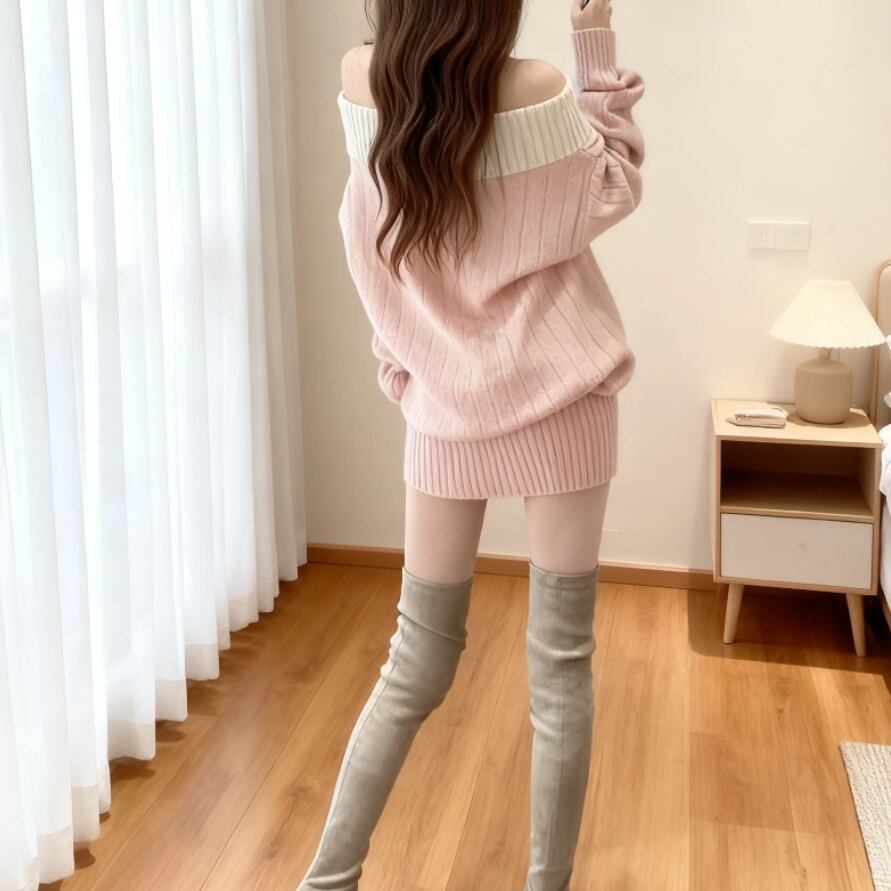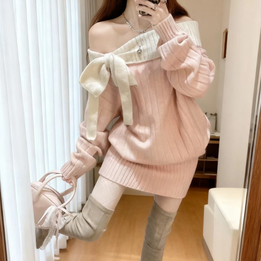 ポロカラーアーガイルニットワンピース ・72278