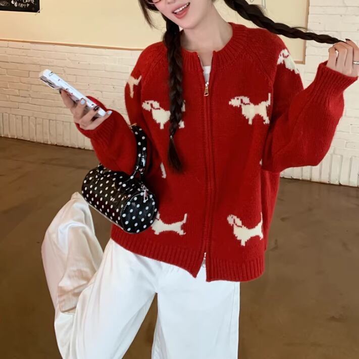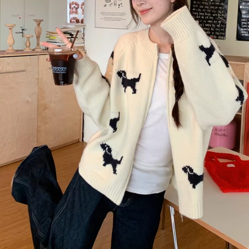 2色/ノルディック柄ポロカラーニットカーデ ・72764