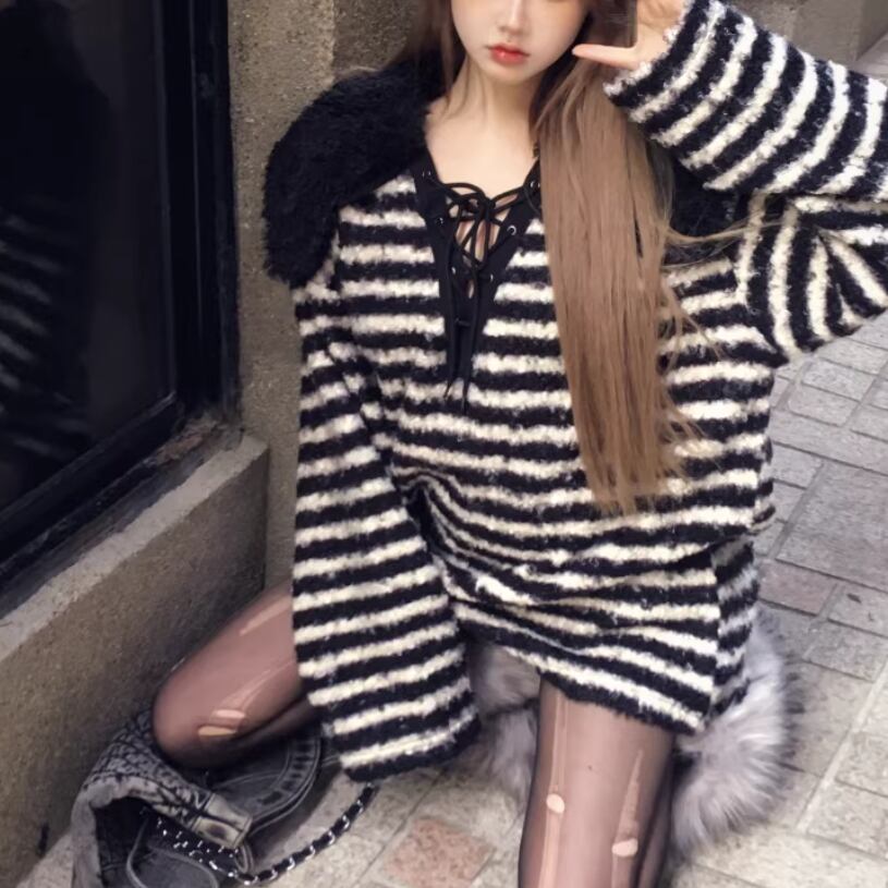 2色/フロントリボンフラワーラメニットトップス ・73833