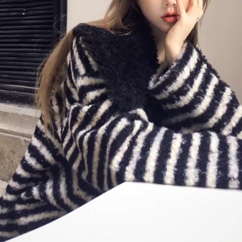 3色/配色ラインハーフジップニットプルオーバー ・73864