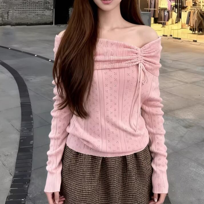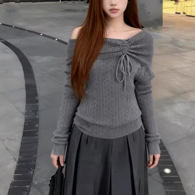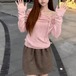 2色/フロントリボンフラワーラメニットトップス ・73833