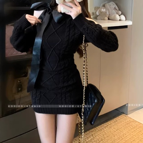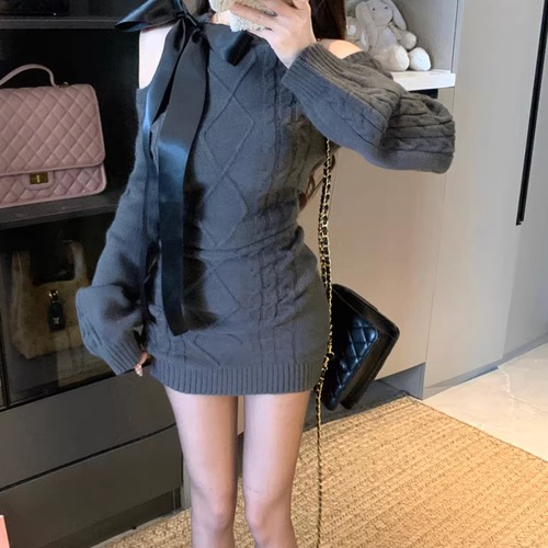 ポロカラーアーガイルニットワンピース ・72278