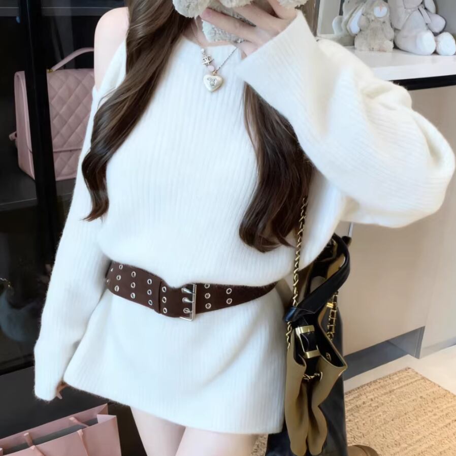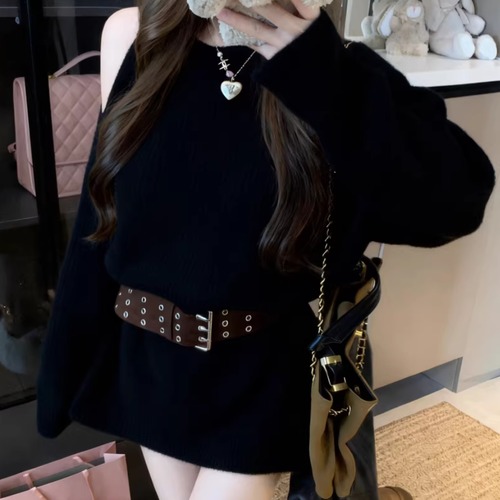 2色/フロントリボンフラワーラメニットトップス ・73833